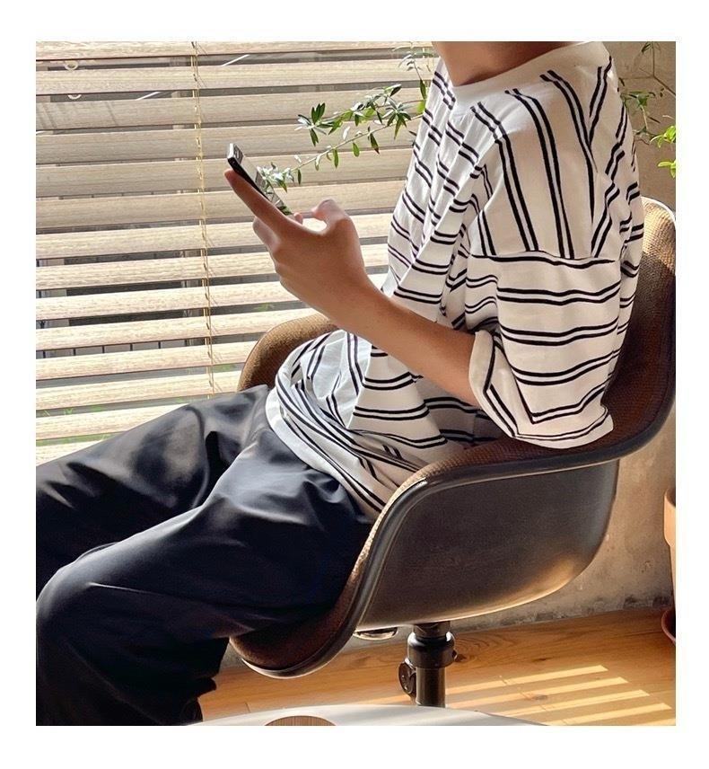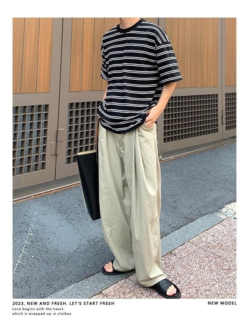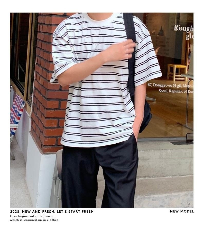 한국 스타일 느슨한 여름 통기성 퓨어 코튼 스트라이프 반팔 셔츠 남자 라운드 넥 캐주얼 홍콩 스타일 올 매치 반소매 셔츠 탑스토어 가기