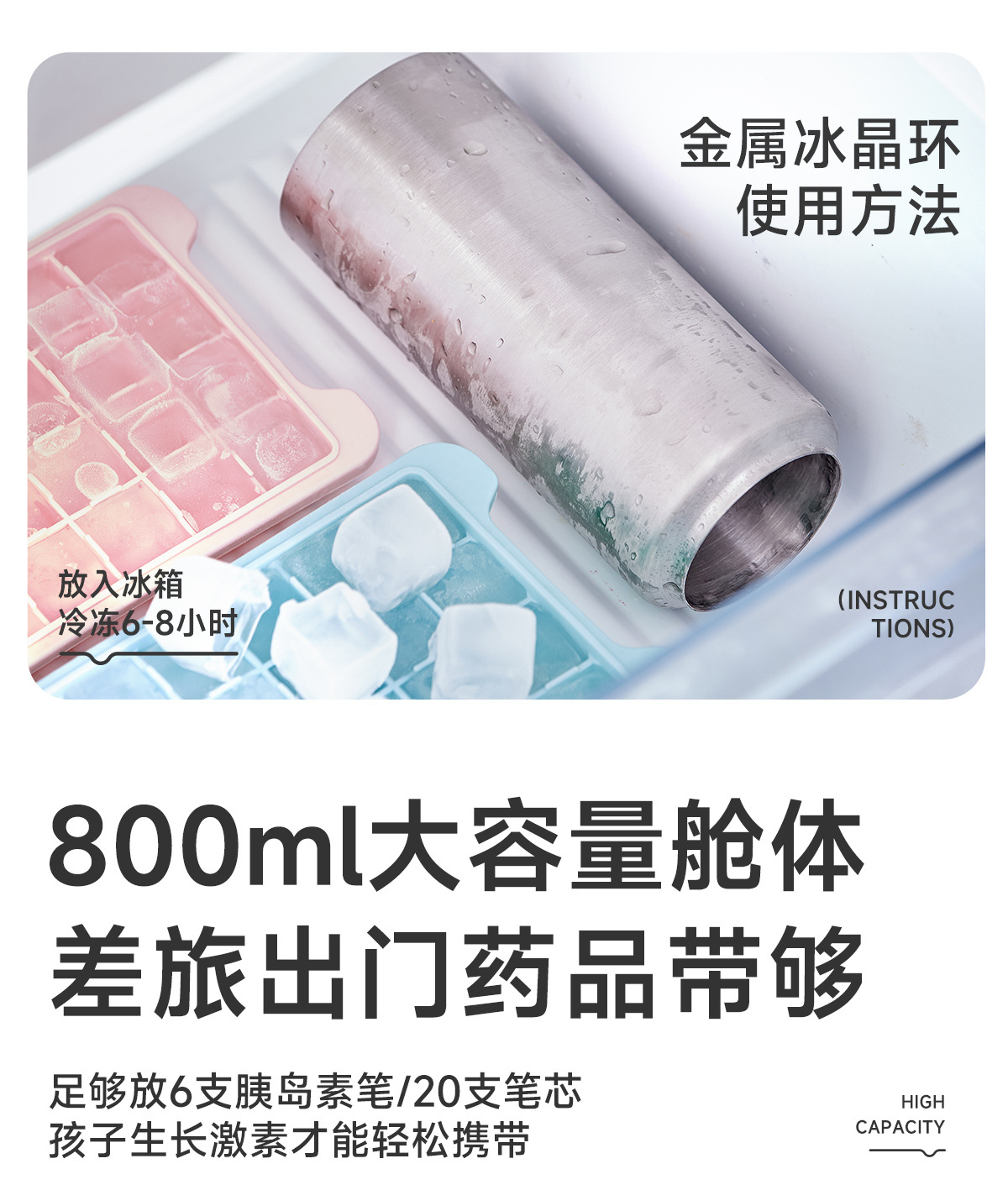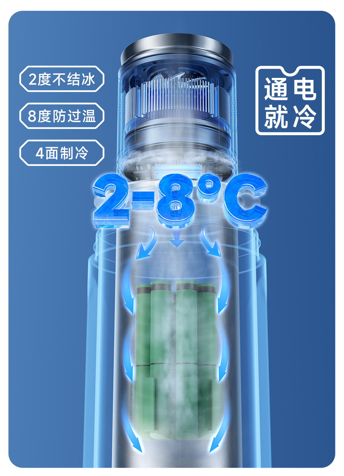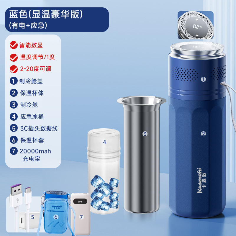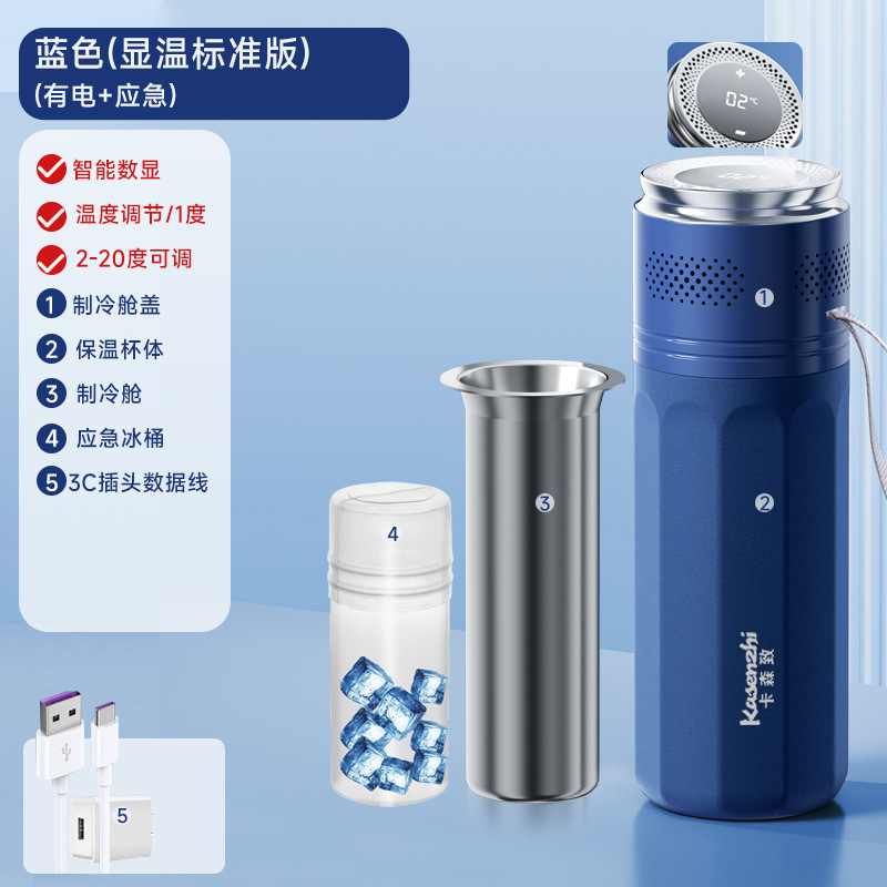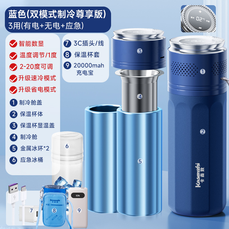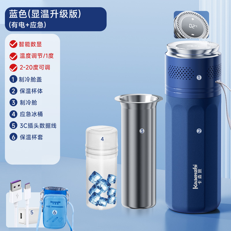 • 파란색 [성장 호르몬용으로 특별히 맞춤 제작된 냉장실★듀얼 모드 냉각 강화★온도조절] + 메탈 아이스링 + 콜드컵 커버 + 보조배터리