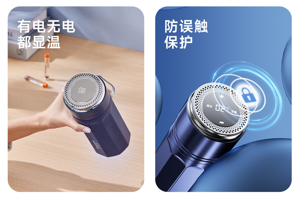 • [라이트 럭셔리 블루 온도 디스플레이 듀얼 사용 디럭스 에디션★온도조절 없음] 냉동실 + 컵커버 + 보조배터리