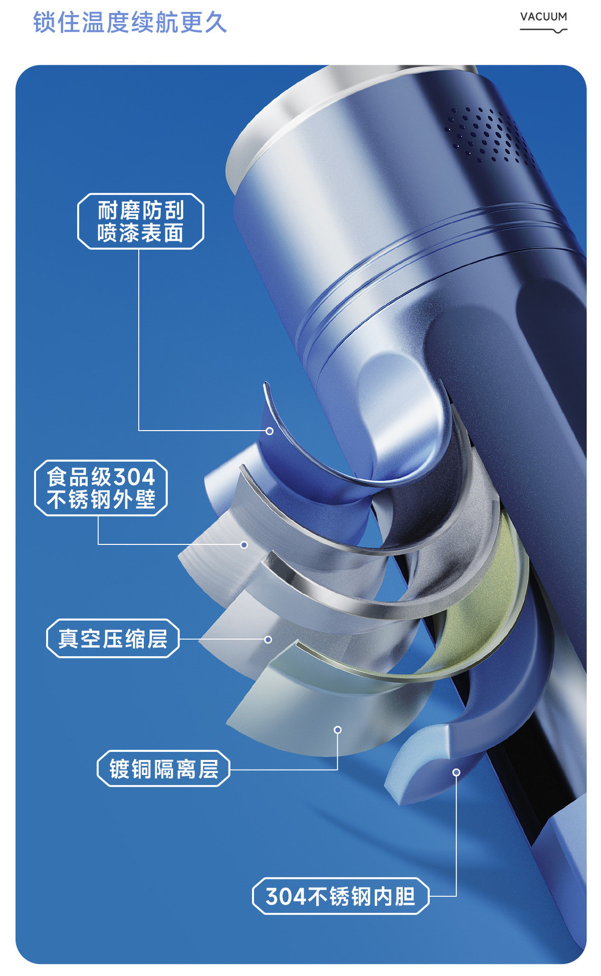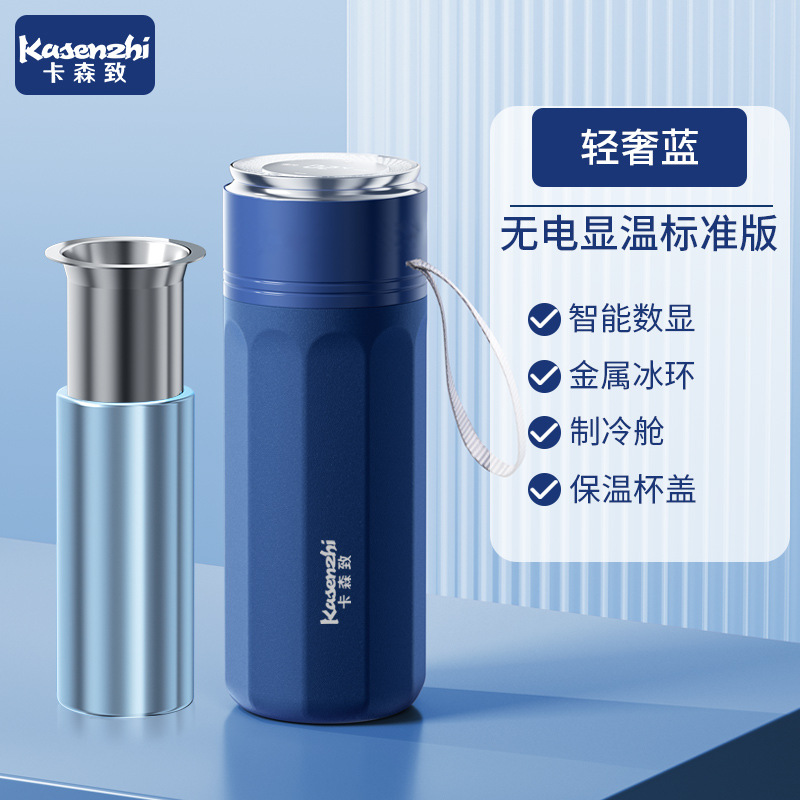 • [라이트 럭셔리 블루 무전기 온도 표시 표준 모델] 콜드 컵 + 금속 아이스 링 + 컵 커버