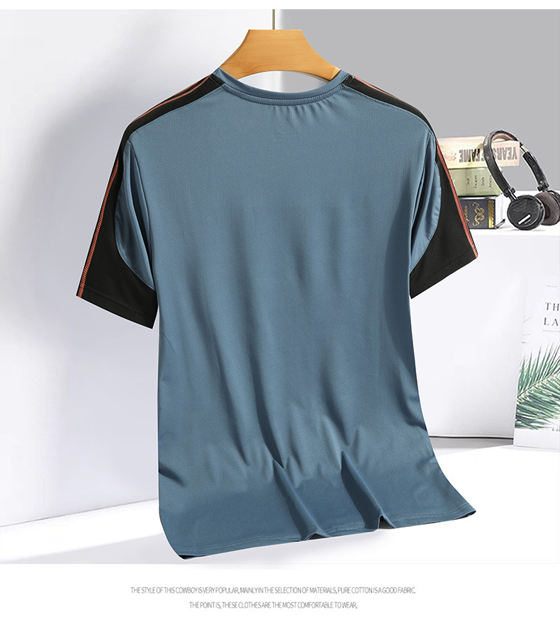 여름 새로운 아이스 실크 반팔 남자 느슨한 올매치 쿨 간단한 빠른 건조 통기성 캐주얼 스포츠 셔츠 남자의 트렌디스토어 가기