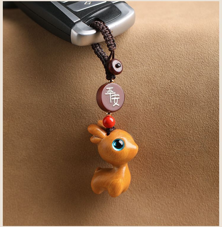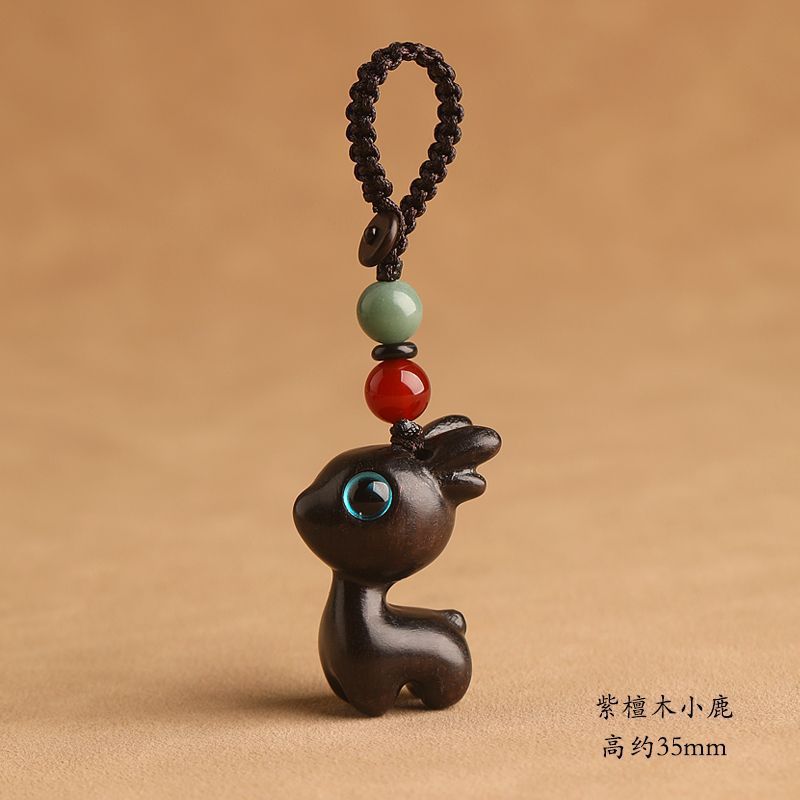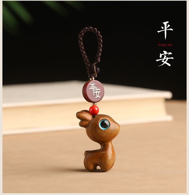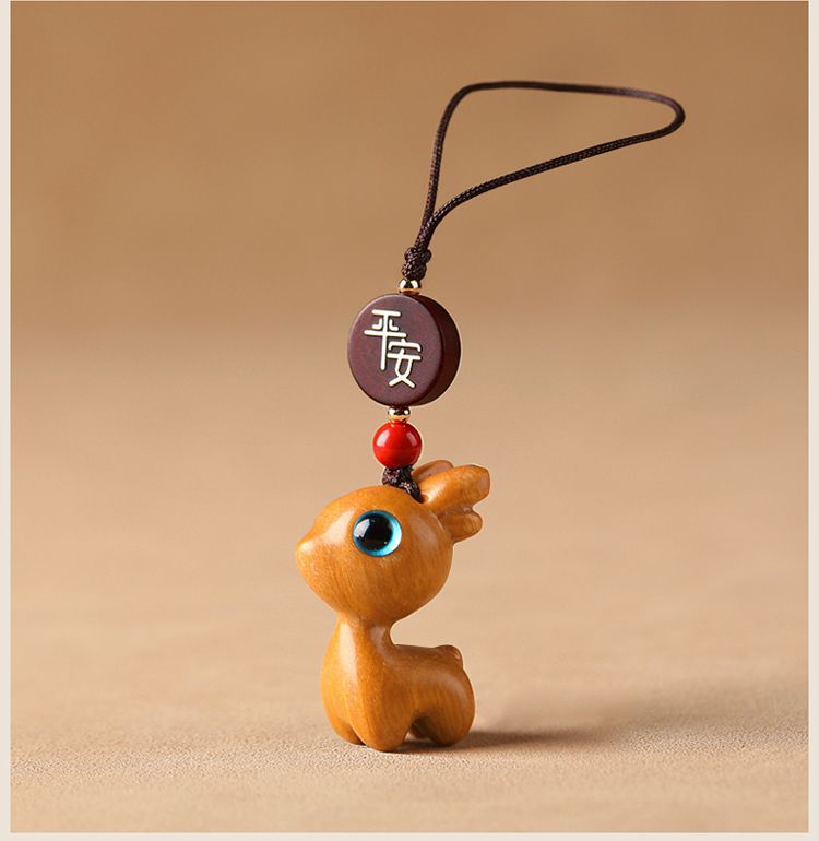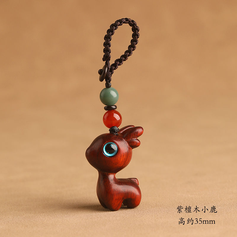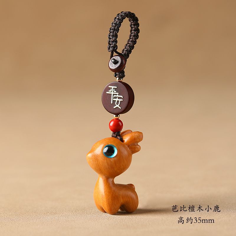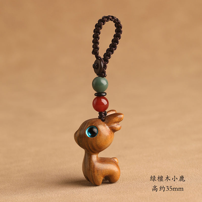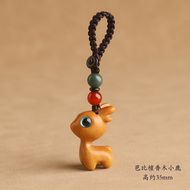 모든 방법 샌달 우드 사슴 키 체인 자동차 펜던트 귀여운 남성과 여성 커플 휴대 전화 체인 펜던트