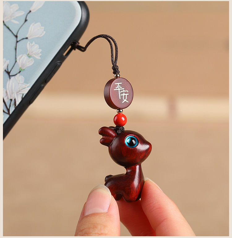 • 바비 샌달 우드 사슴 휴대 전화 체인