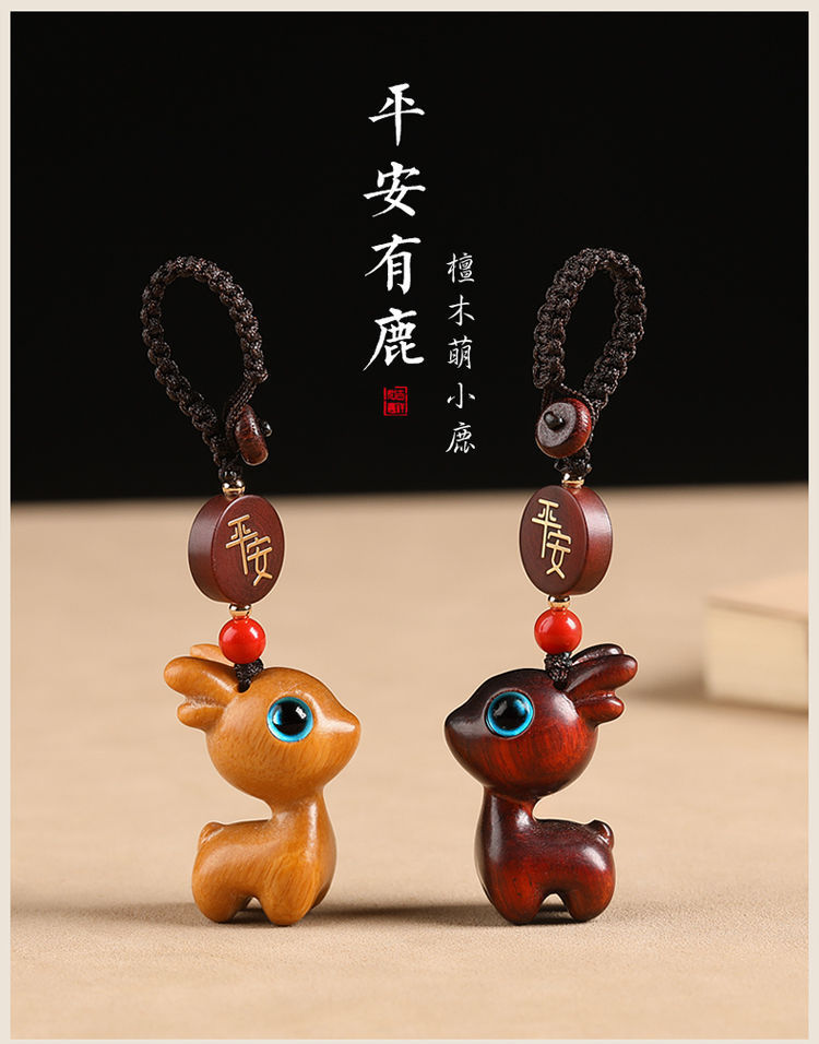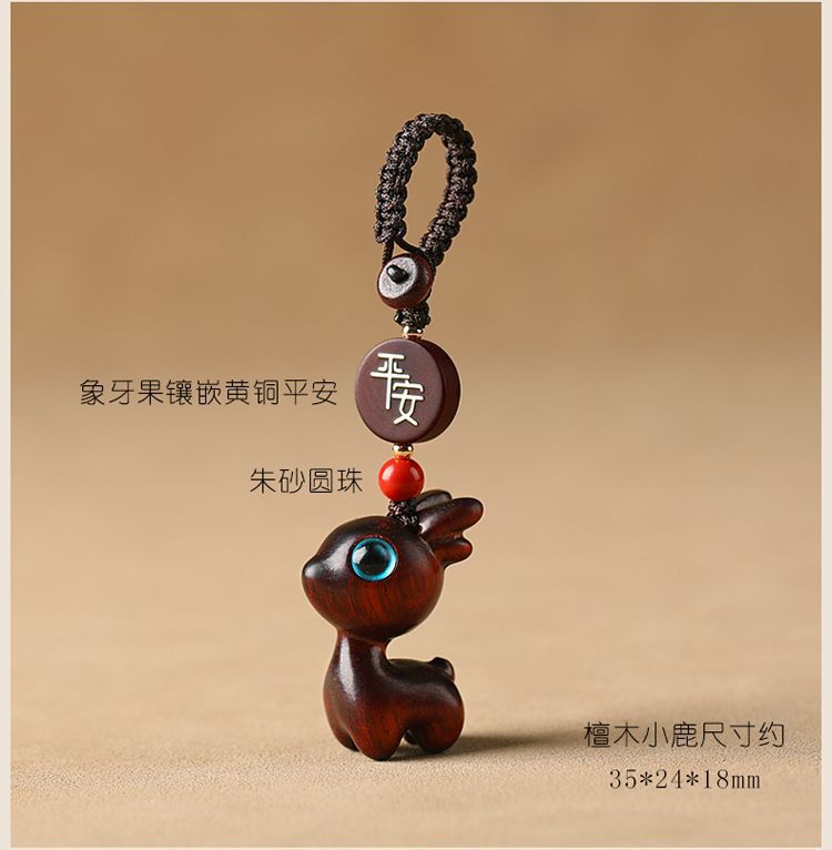 모든 방법 샌달 우드 사슴 키 체인 자동차 펜던트 귀여운 남성과 여성 커플 휴대 전화 체인 펜던트스토어 가기