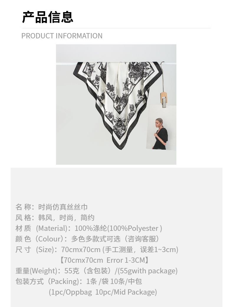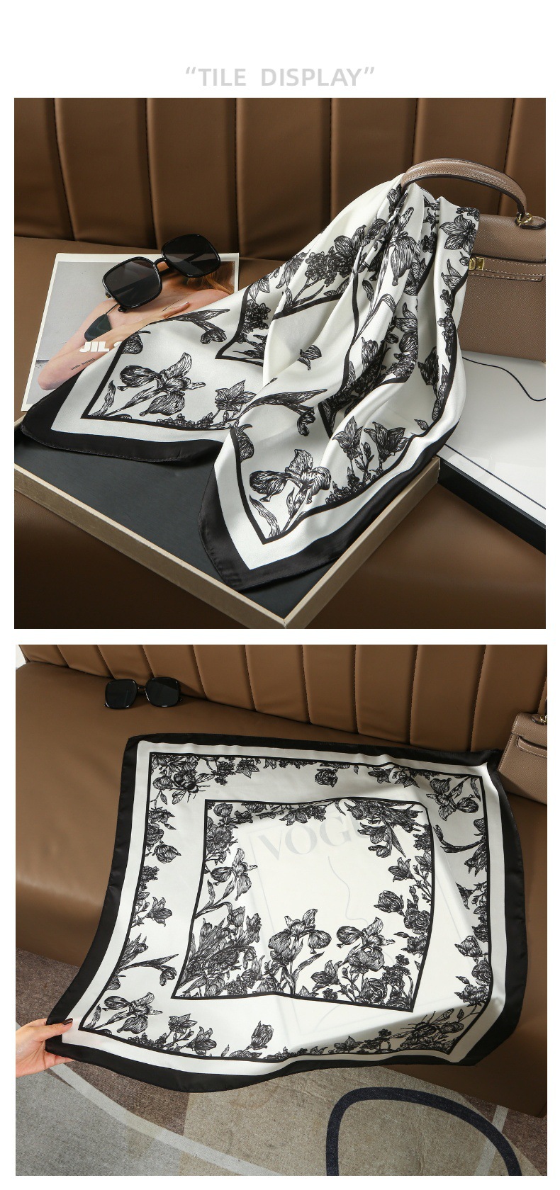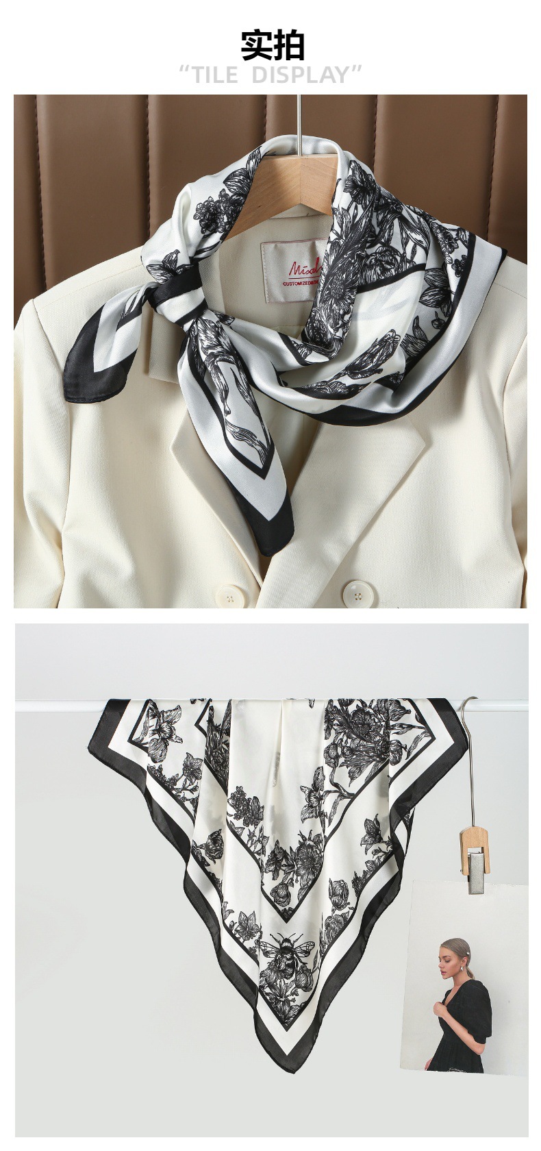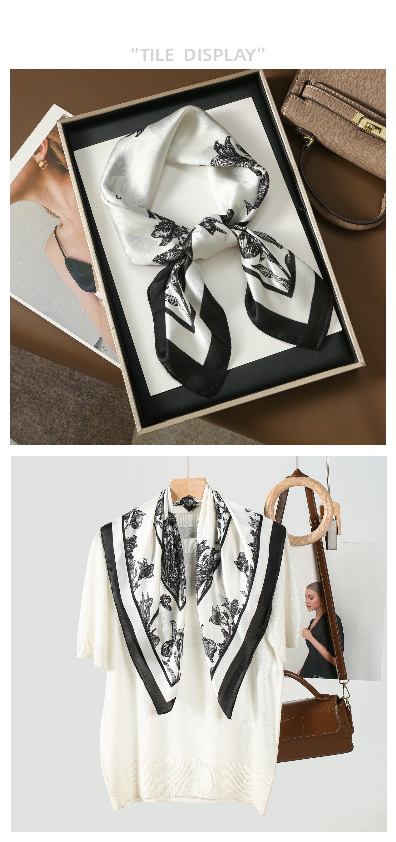 70CM 복잡한 간단한 흑백 인쇄 스카프 여성 실크 같은 우아한 조커 간단한 유니폼 스카프 도매스토어 가기