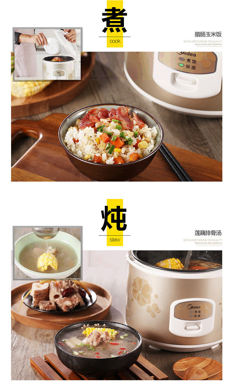 Midea MB-WYJ301 미니 전기 밥솥 가정용 전기 밥솥 2-4 명 전기 밥솥 전기 밥솥 3L스토어 가기