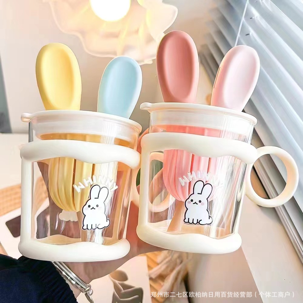 토끼 귀 버튼 밀짚 컵 4131-B/4124-2 크리 에이 티브 핸들 토끼 귀 컵 간단한 밀짚 컵스토어 가기