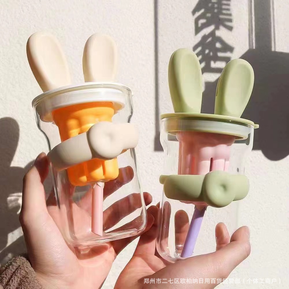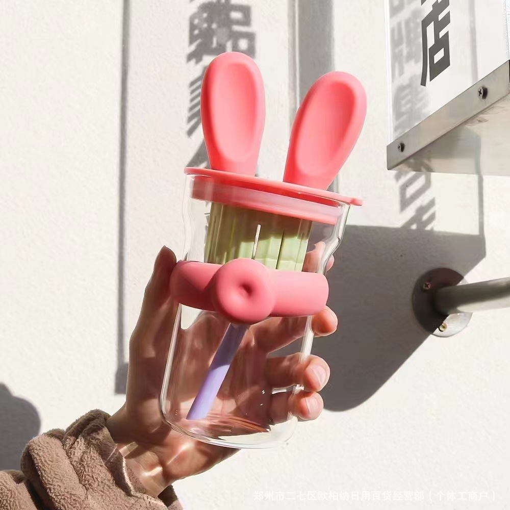 토끼 귀 버튼 밀짚 컵 4131-B/4124-2 크리 에이 티브 핸들 토끼 귀 컵 간단한 밀짚 컵
