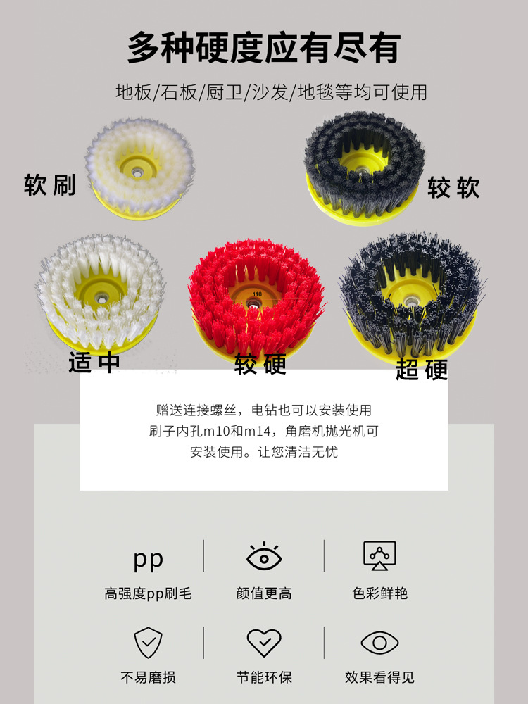 전기 청소 브러시 욕실 타일 대형 하드 헤어 플로어 브러시 주방 카펫 다기능 전기 드릴 청소 나일론 헤어 브러쉬