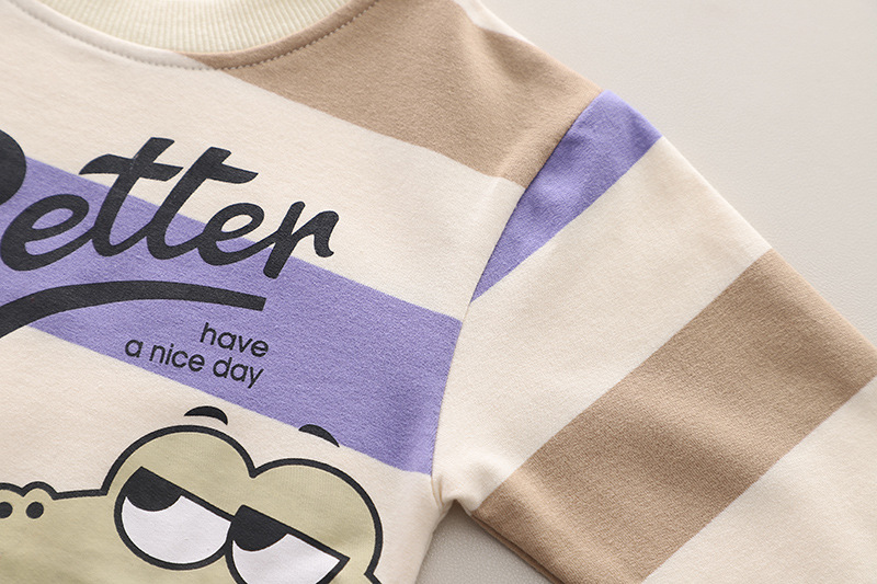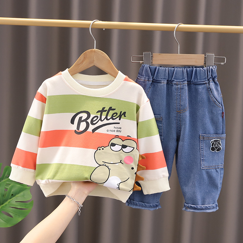 2024 새로운 가을 어린이 착용 소년 공룡 크루 넥 긴 소매 2 피스 어린이 세트 바지 어린이 가을 착용