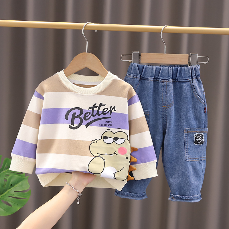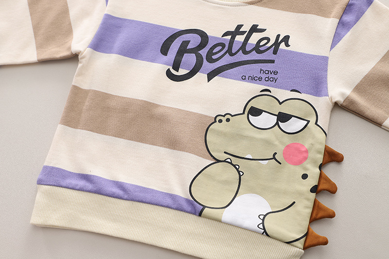2024 새로운 가을 어린이 착용 소년 공룡 크루 넥 긴 소매 2 피스 어린이 세트 바지 어린이 가을 착용스토어 가기
