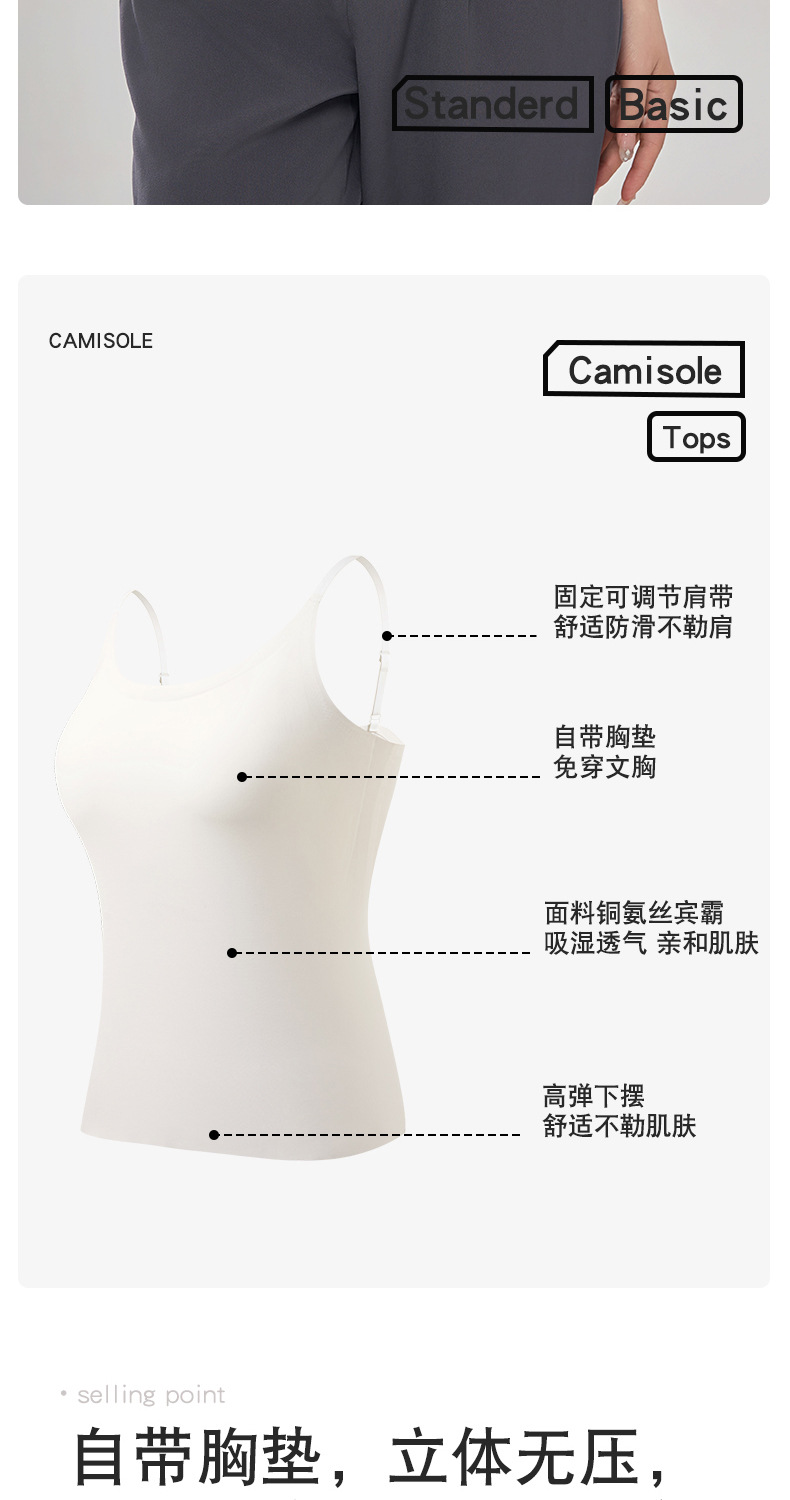 여름용 시원한 구리아미드 슬립탑 여성용 브라탑 일체형 탑 고정컵 여성 속옷 신상품스토어 가기