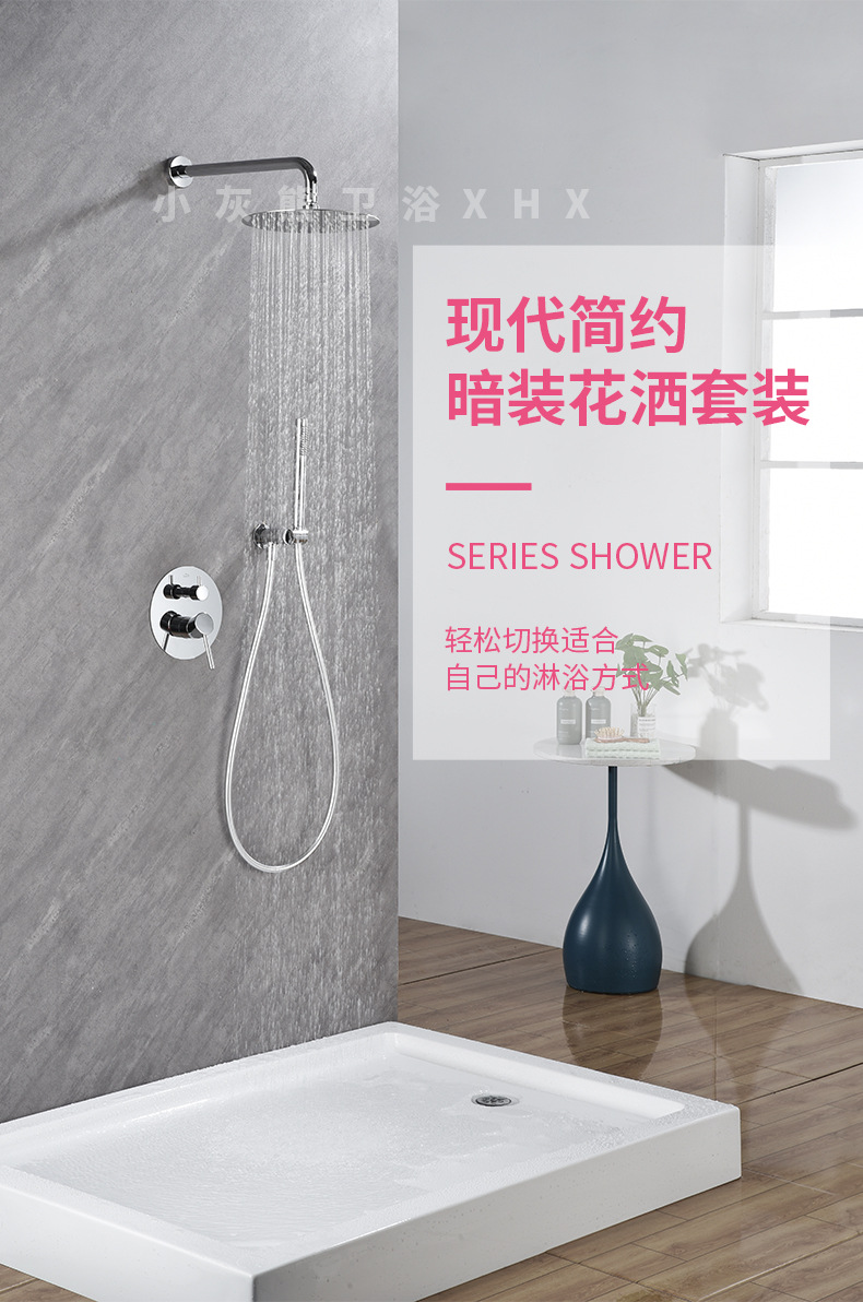 숨겨진 샤워 헤드 세트 이중 기능 욕실 샤워 호텔 엔지니어링 고급 구리 벽걸이 형 욕실 샤워 헤드 세트