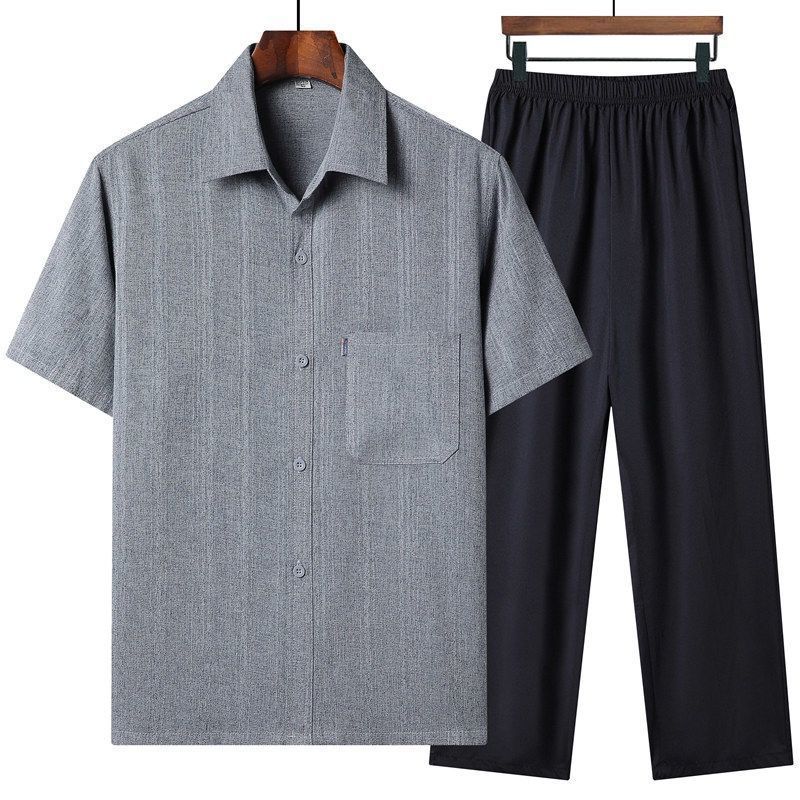 여름 중년 및 노인 셔츠 남자 세트 아빠면 및 리넨 셔츠 할아버지의 여름 반팔 여름 느슨한 옷스토어 가기