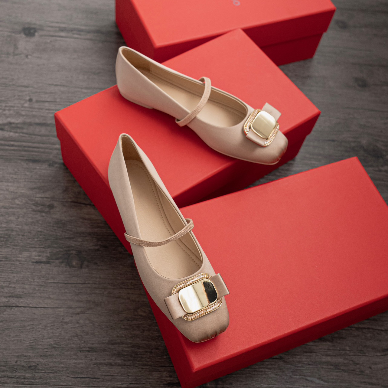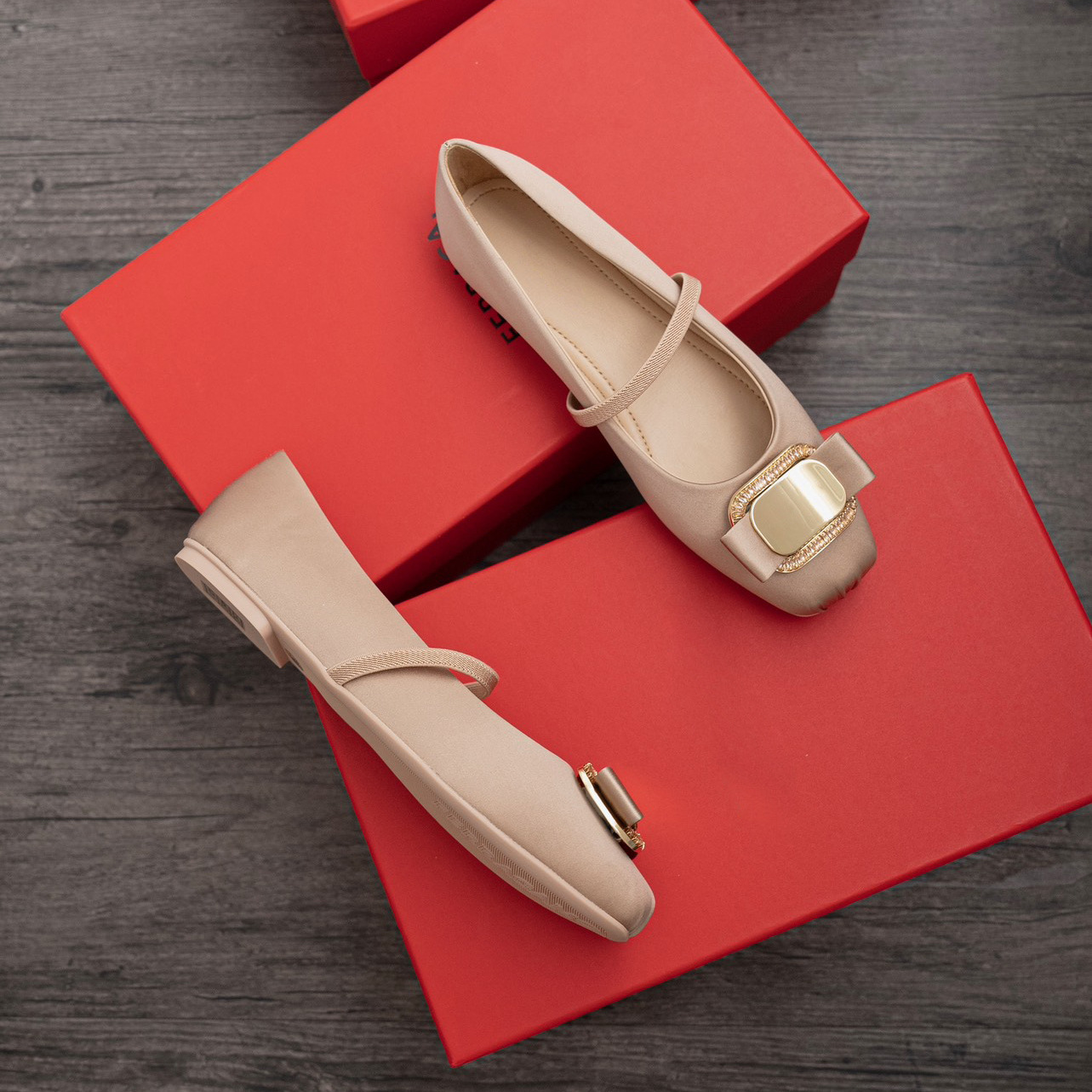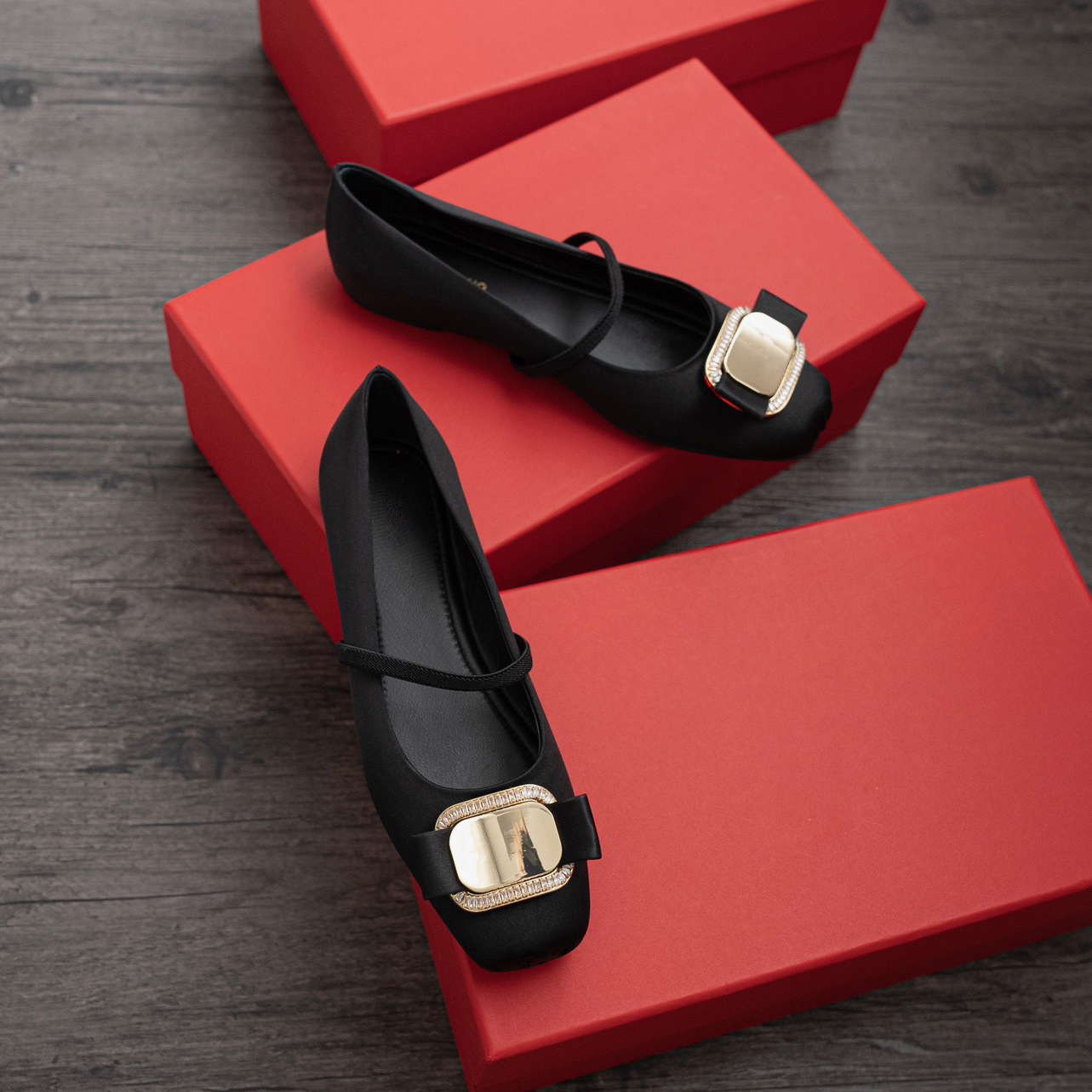 주름 사각 발가락 플랫 발레 얕은 탑 캐주얼 메탈 나비 버클 메리 제인 신발 매일 통근