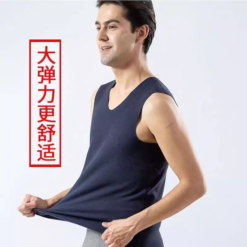 원활한 따뜻한 조끼 남성용 가을과 겨울 기모 실크 패치 양복 조끼는 안쪽 착용 밑바닥 민소매 티셔츠 조끼