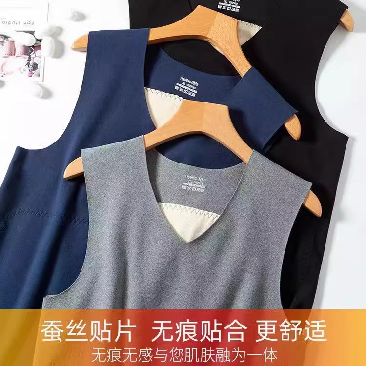 원활한 따뜻한 조끼 남성용 가을과 겨울 기모 실크 패치 양복 조끼는 안쪽 착용 밑바닥 민소매 티셔츠 조끼스토어 가기
