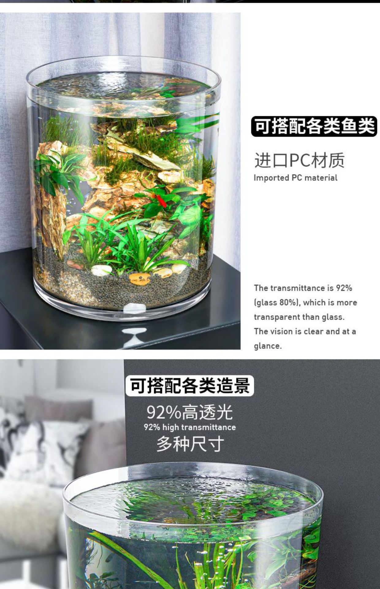 아크릴 강화 유리 작은 거실 바닥 폭발 방지 플라스틱 금붕어 탱크 조경 투명 베어 탱크를 두려워하지 않음