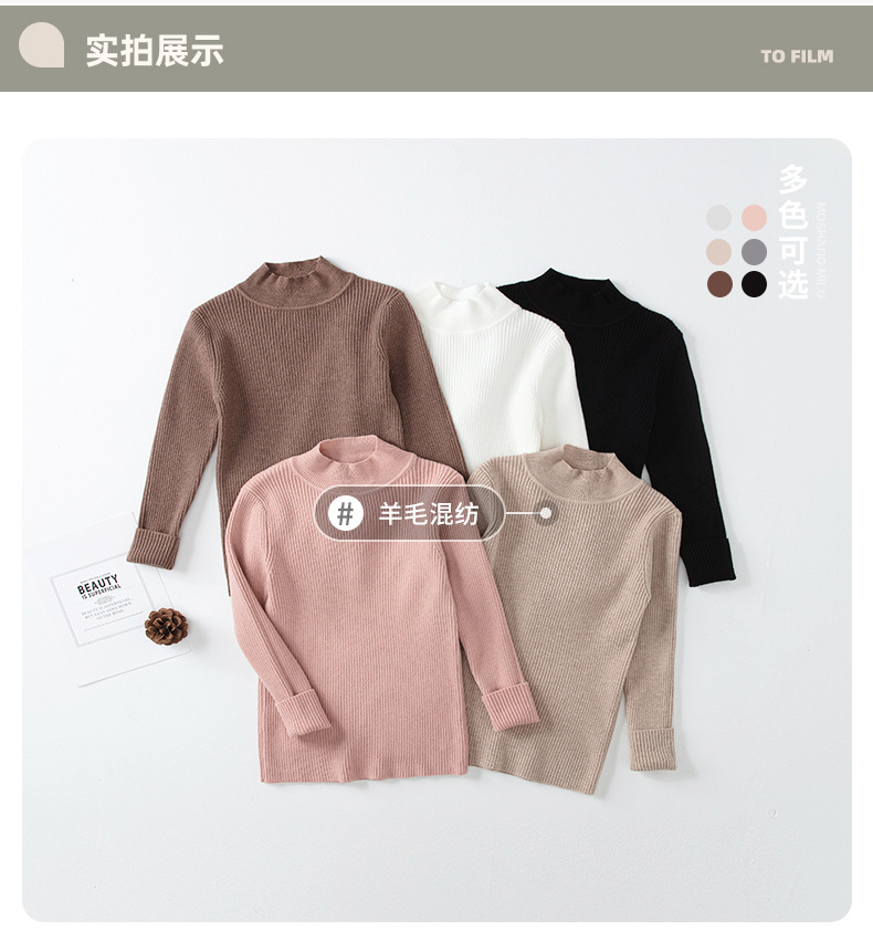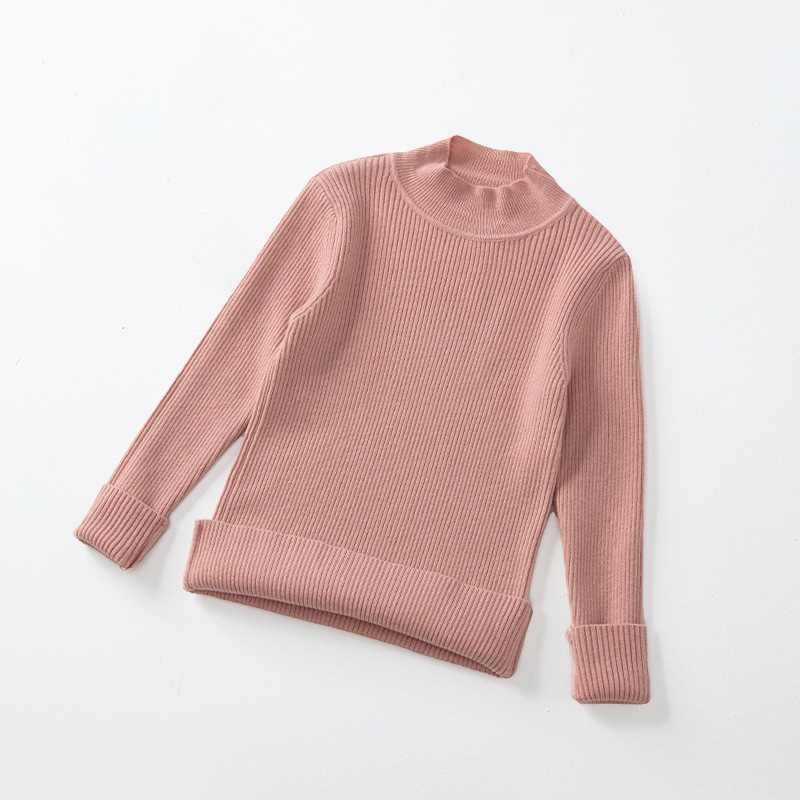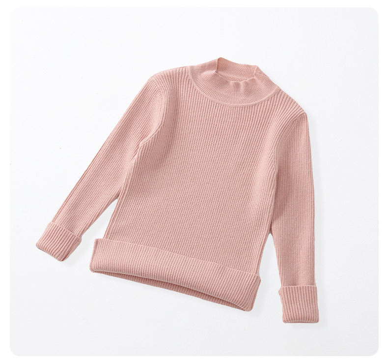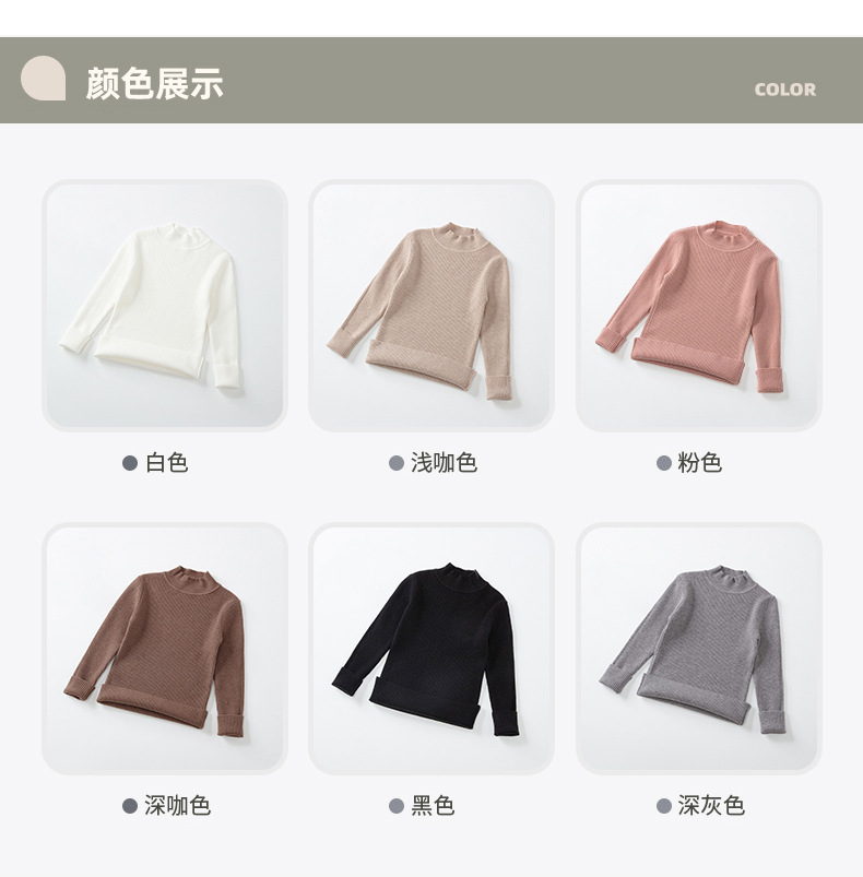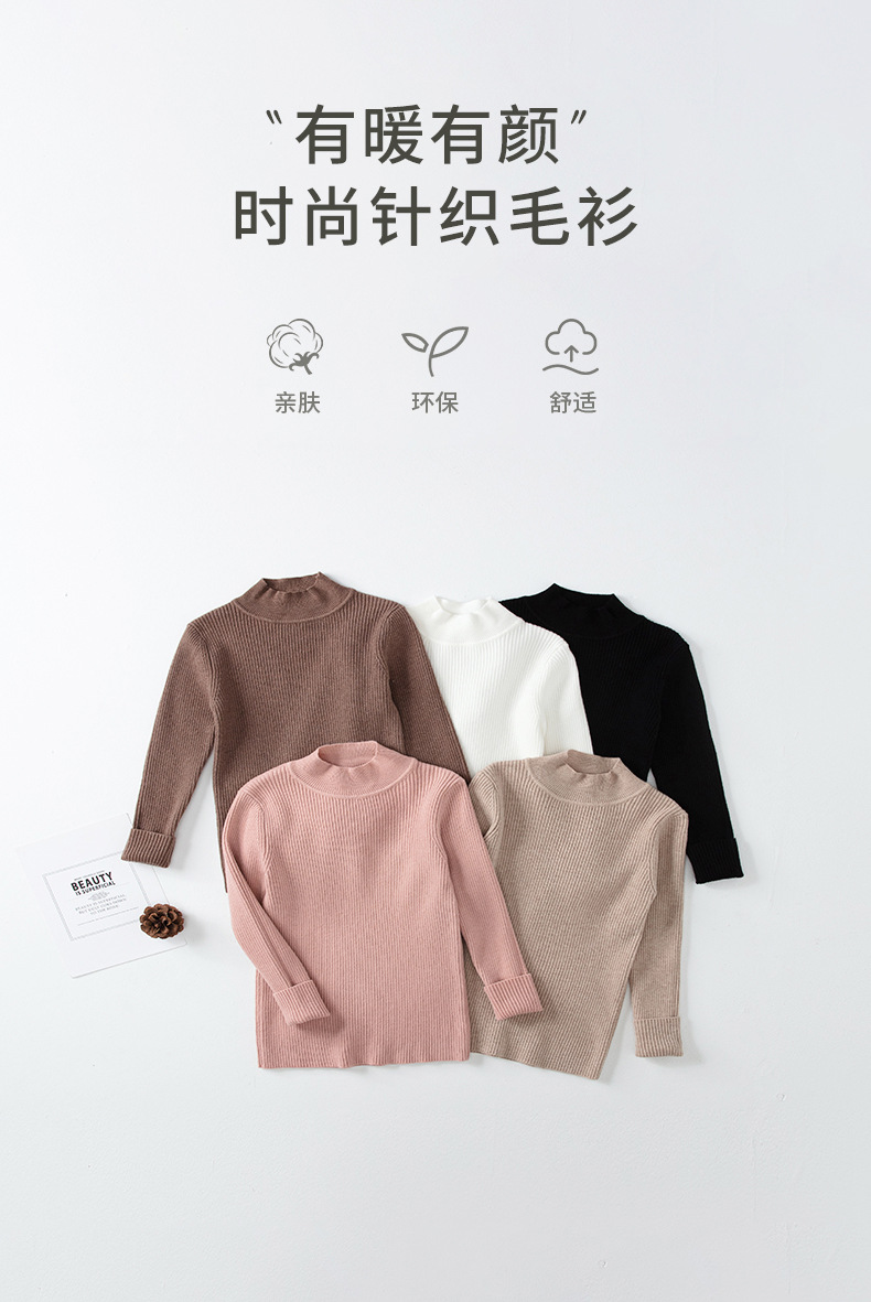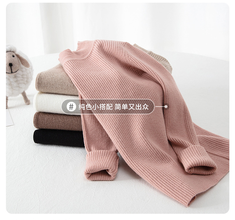 여아용 스웨터 2025 가을 겨울 신상 아동용 단색 다용도 니트웨어 반목폴라 풀오버 울 베이스 셔츠