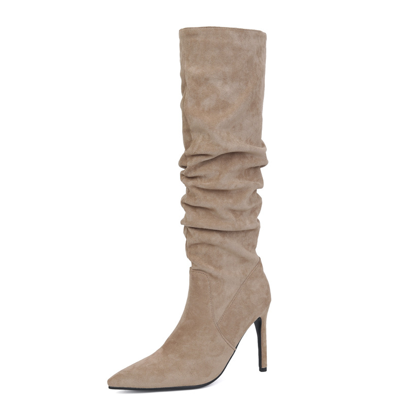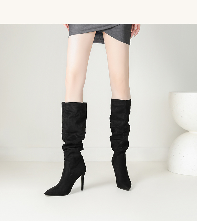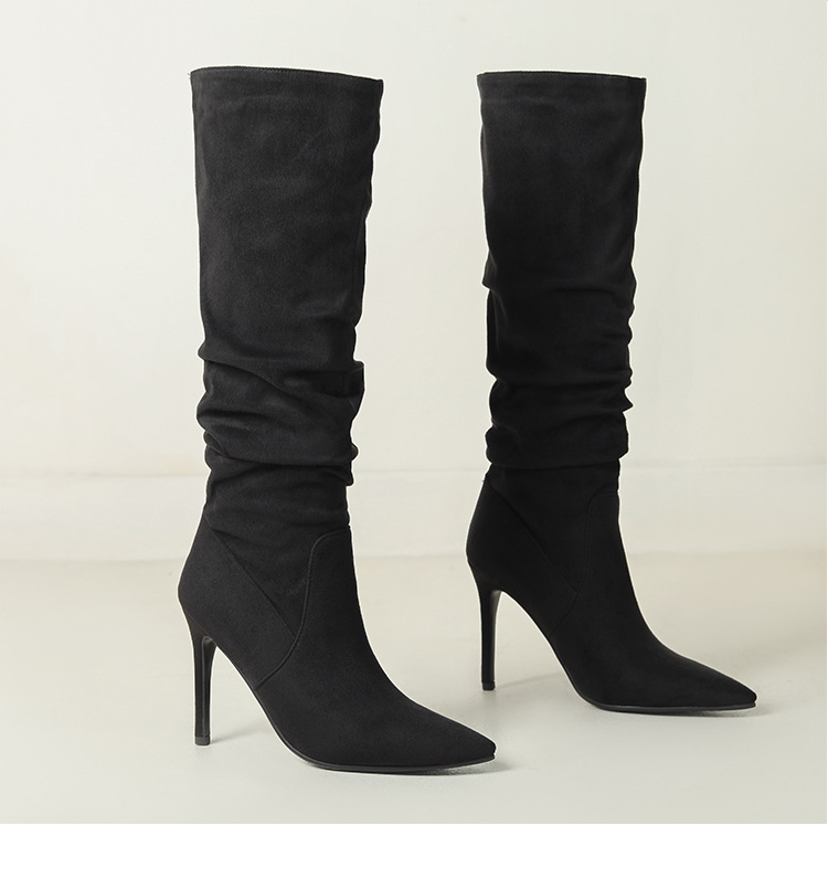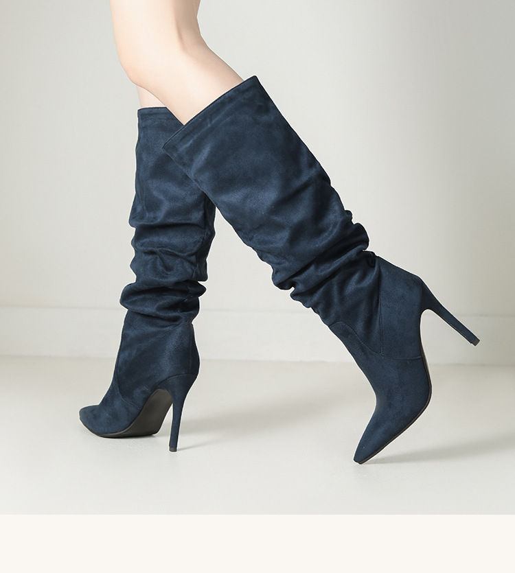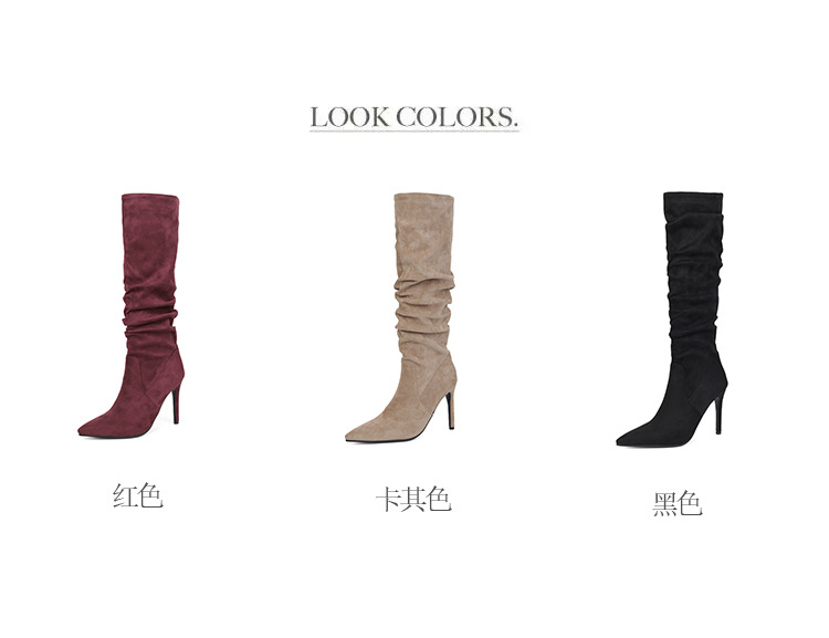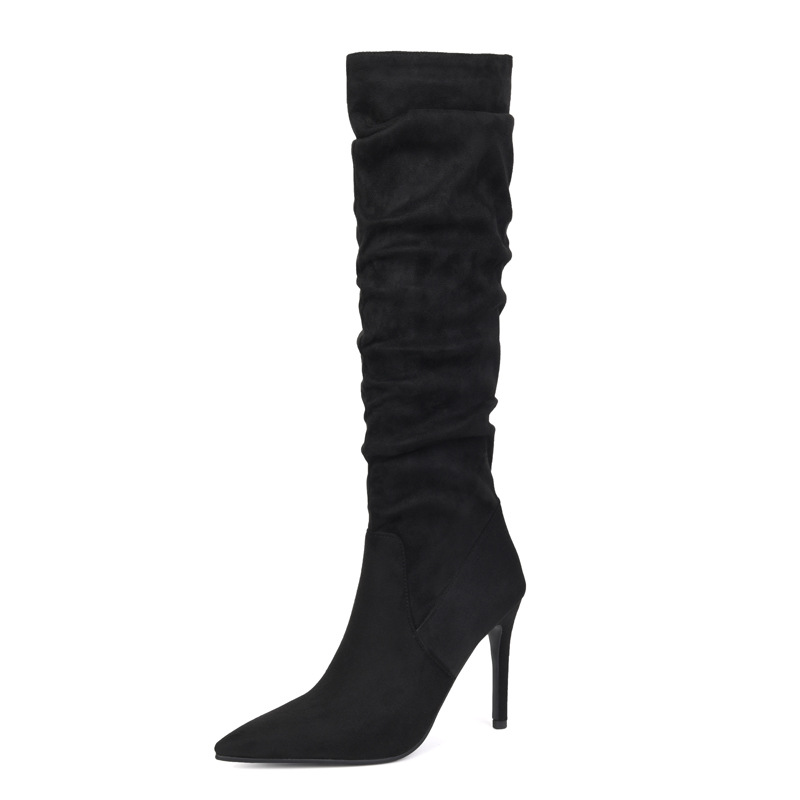 33-43 대형 부츠 탄성 벨벳 뾰족한 얇은 힐 높은 부츠 더미 여성 부츠 가을과 겨울 새로운 국경 여성 신발스토어 가기