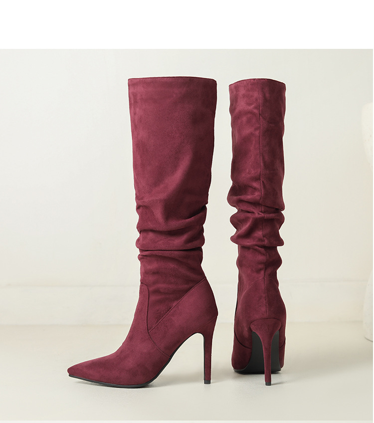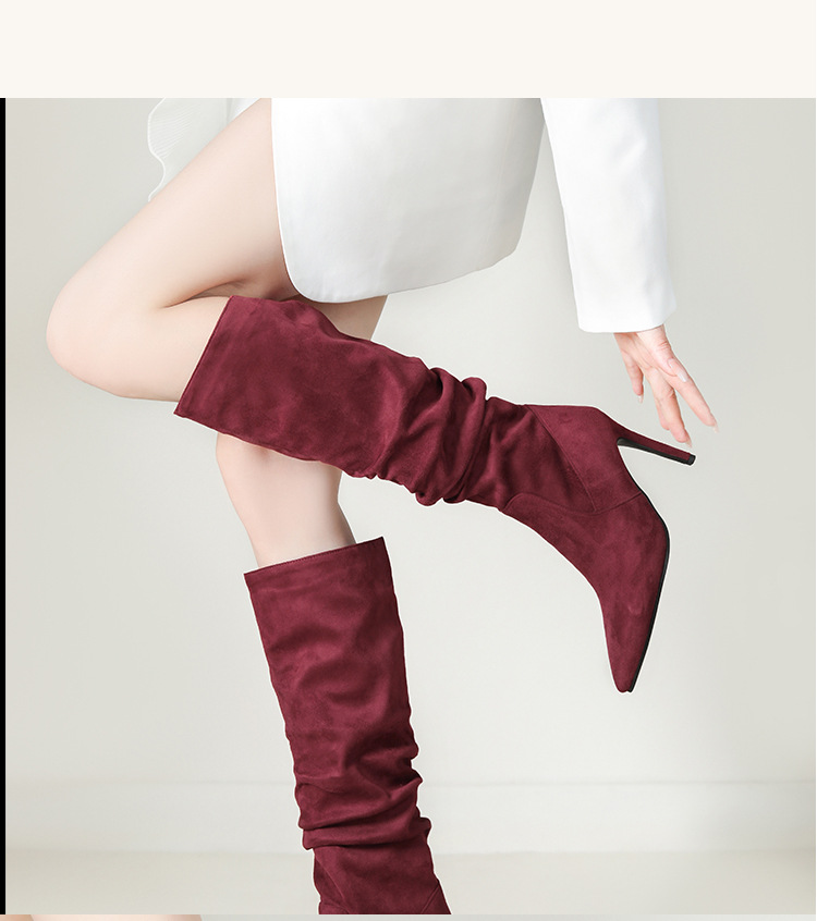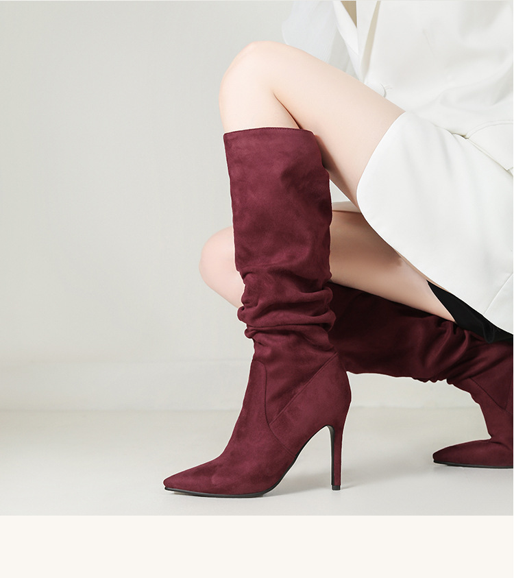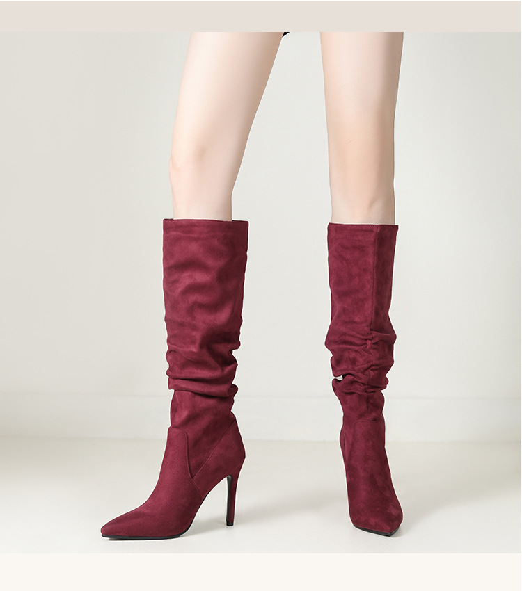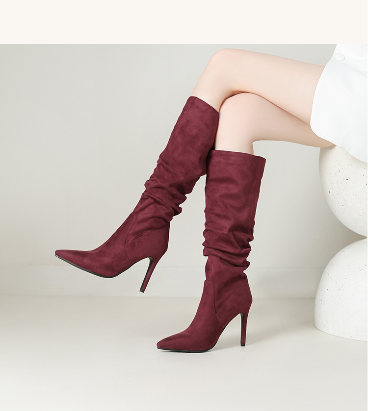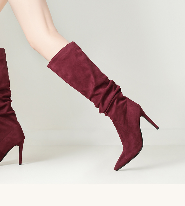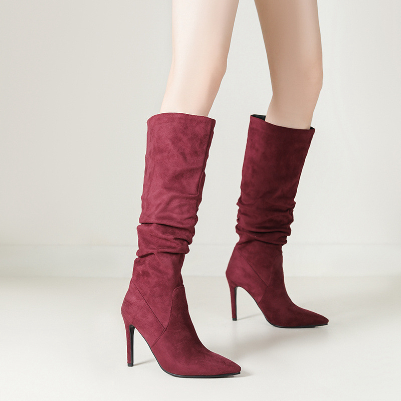 33-43 대형 부츠 탄성 벨벳 뾰족한 얇은 힐 높은 부츠 더미 여성 부츠 가을과 겨울 새로운 국경 여성 신발