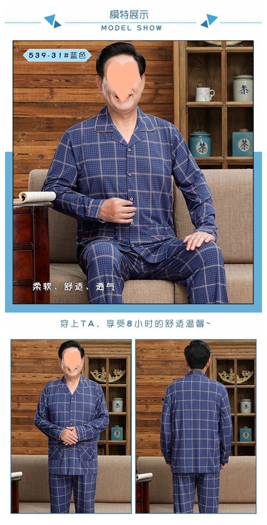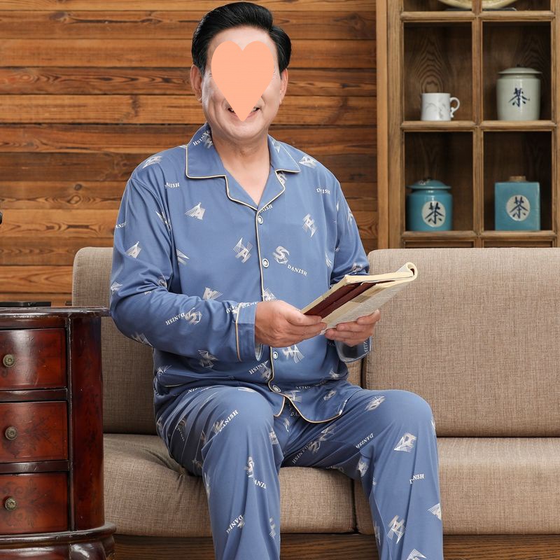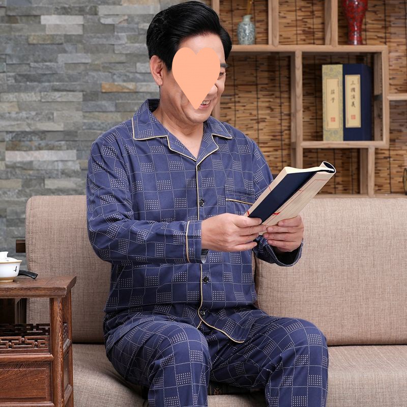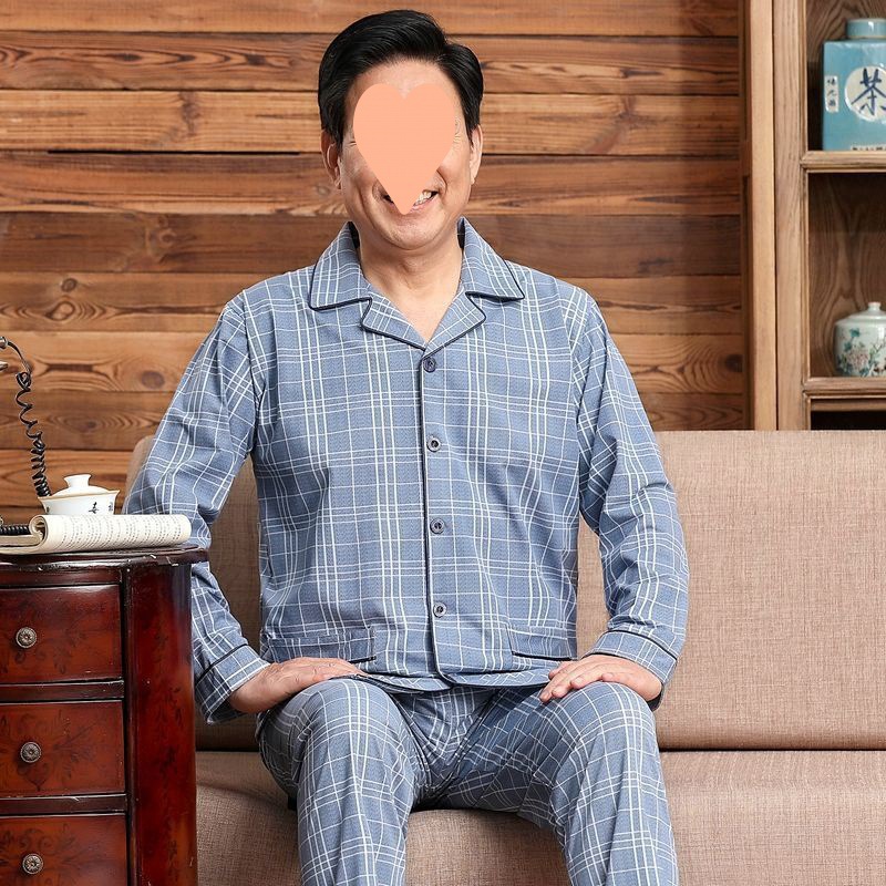 중년 및 노인을위한 잠옷 남자 봄과 가을 순면 긴팔 얇은 가을과 겨울 플러스 사이즈 늙은 아빠 집 옷 세트스토어 가기
