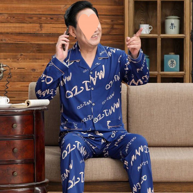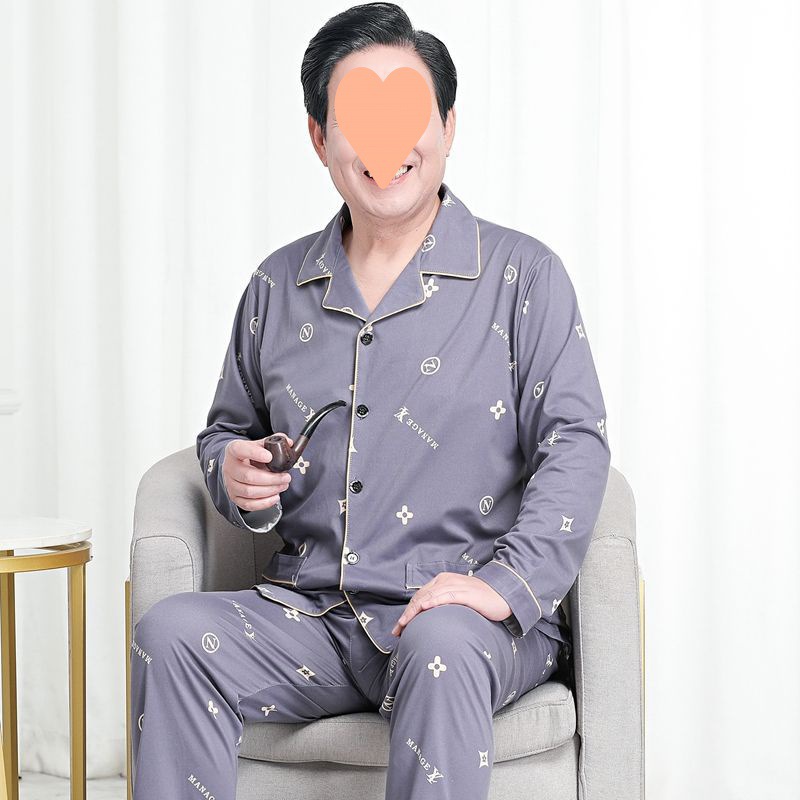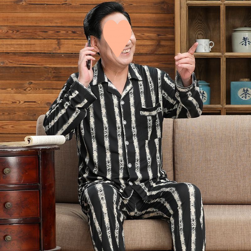 중년 및 노인을위한 잠옷 남자 봄과 가을 순면 긴팔 얇은 가을과 겨울 플러스 사이즈 늙은 아빠 집 옷 세트