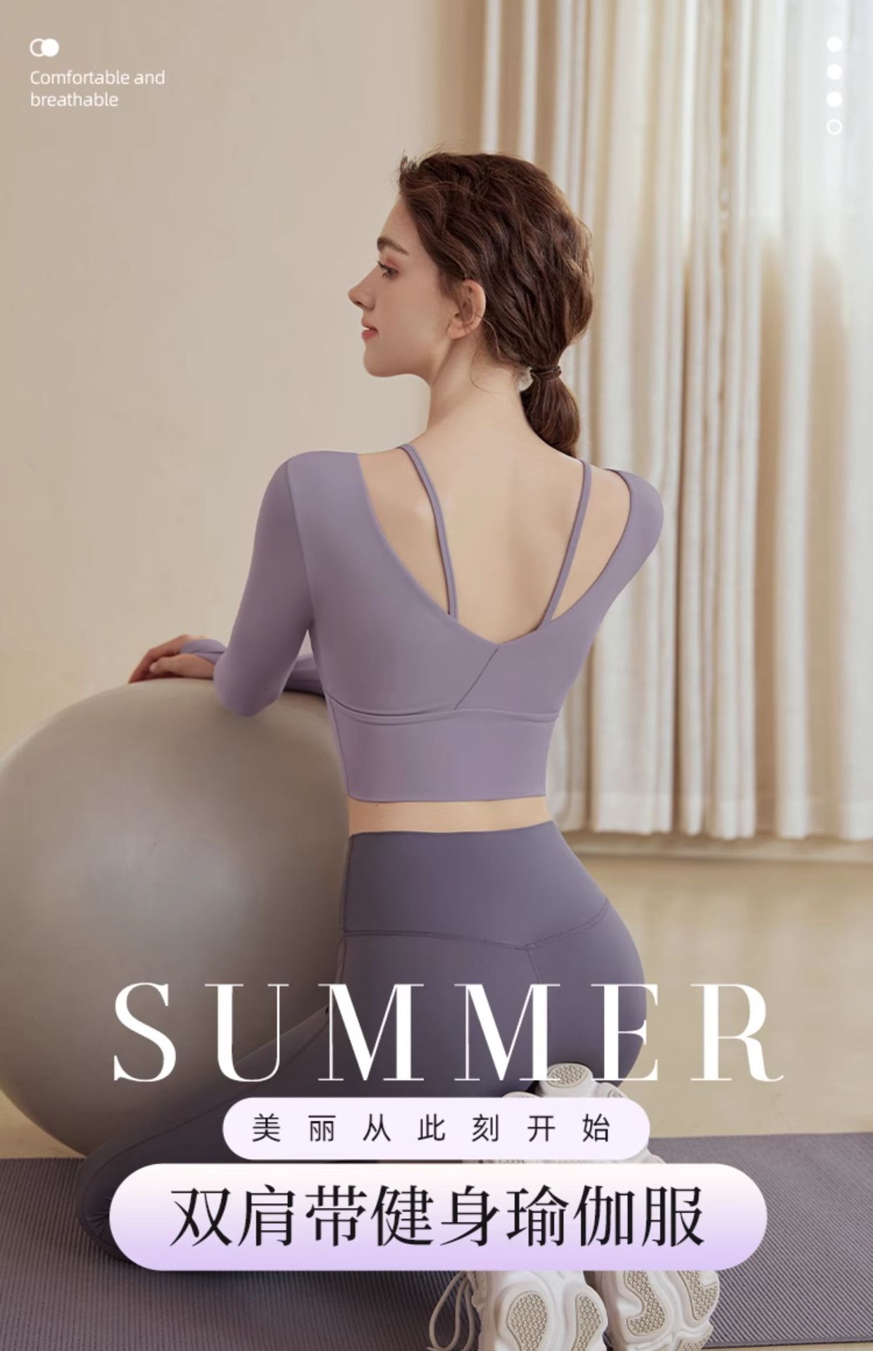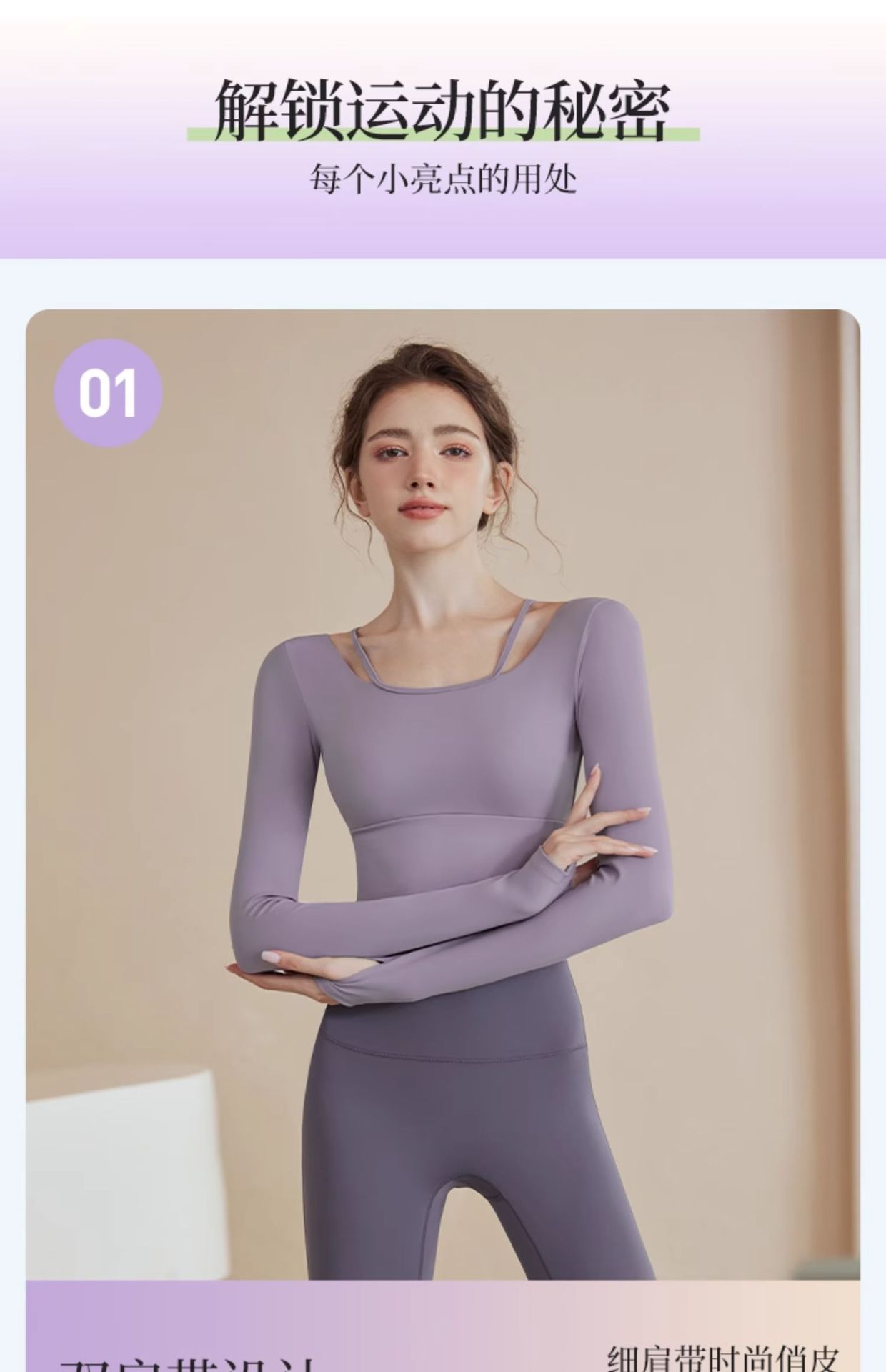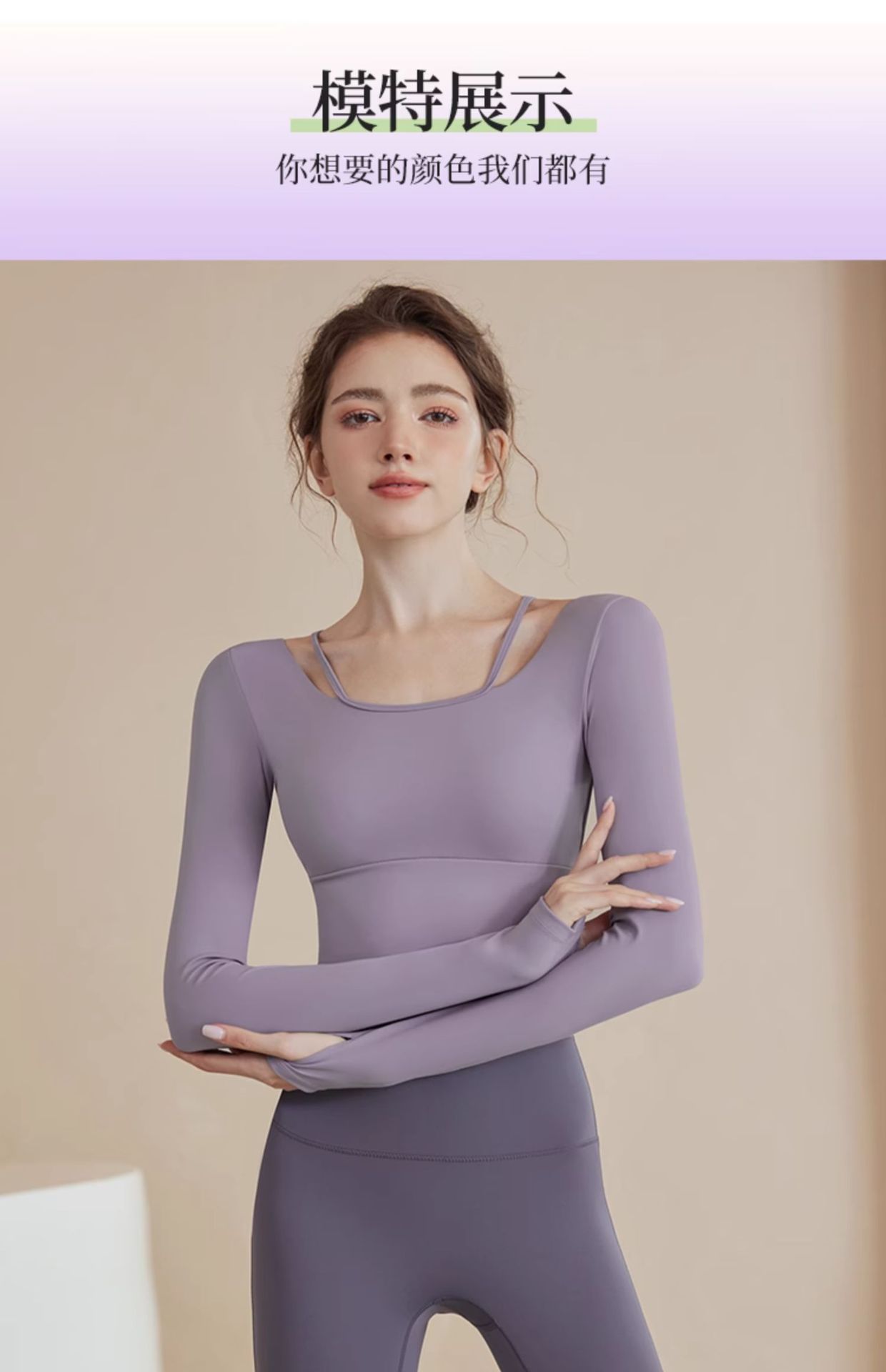 • 핑크 탑 [고정 컵 가슴 패드] + 그레이 퍼플 바지