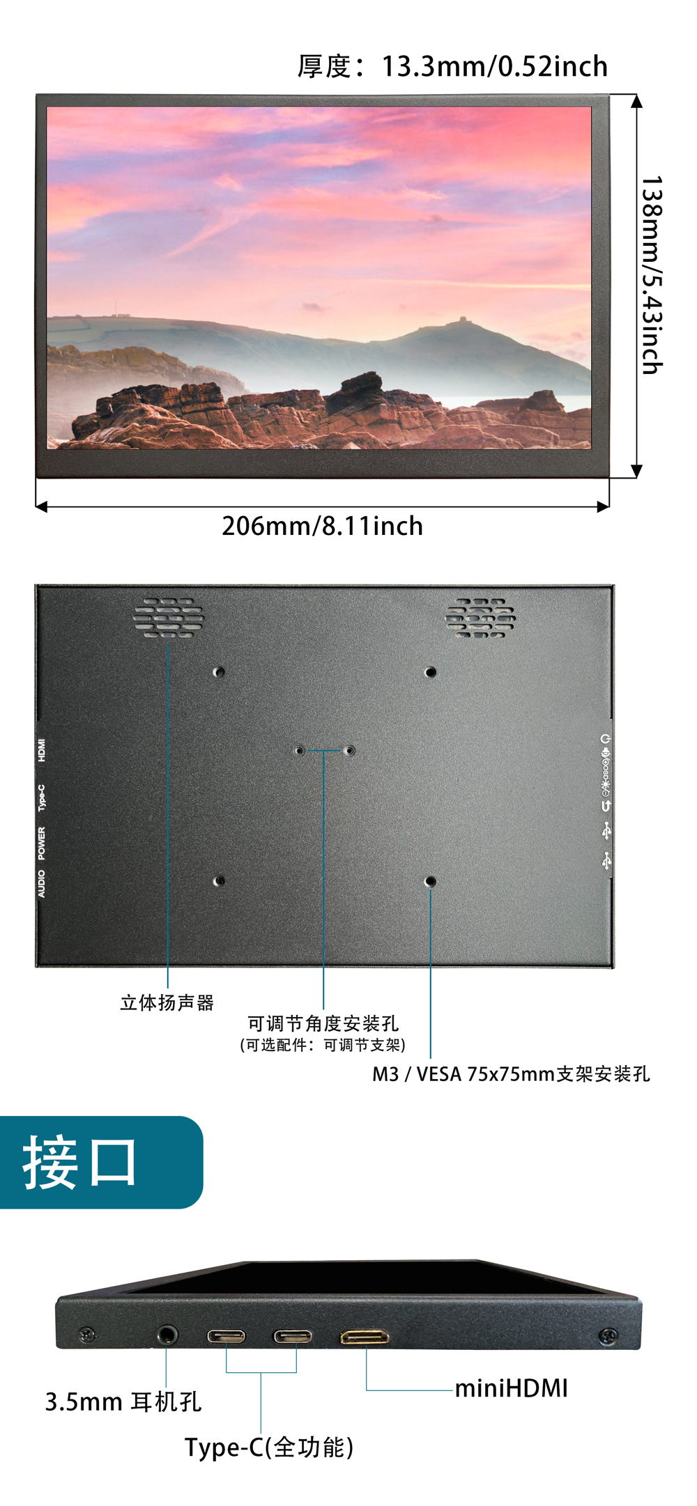 새로운 8.9inch 10포인트 터치 휴대용 디스플레이PS4 스위치 Type-C 원라인 통신 HD 보조 화면스토어 가기