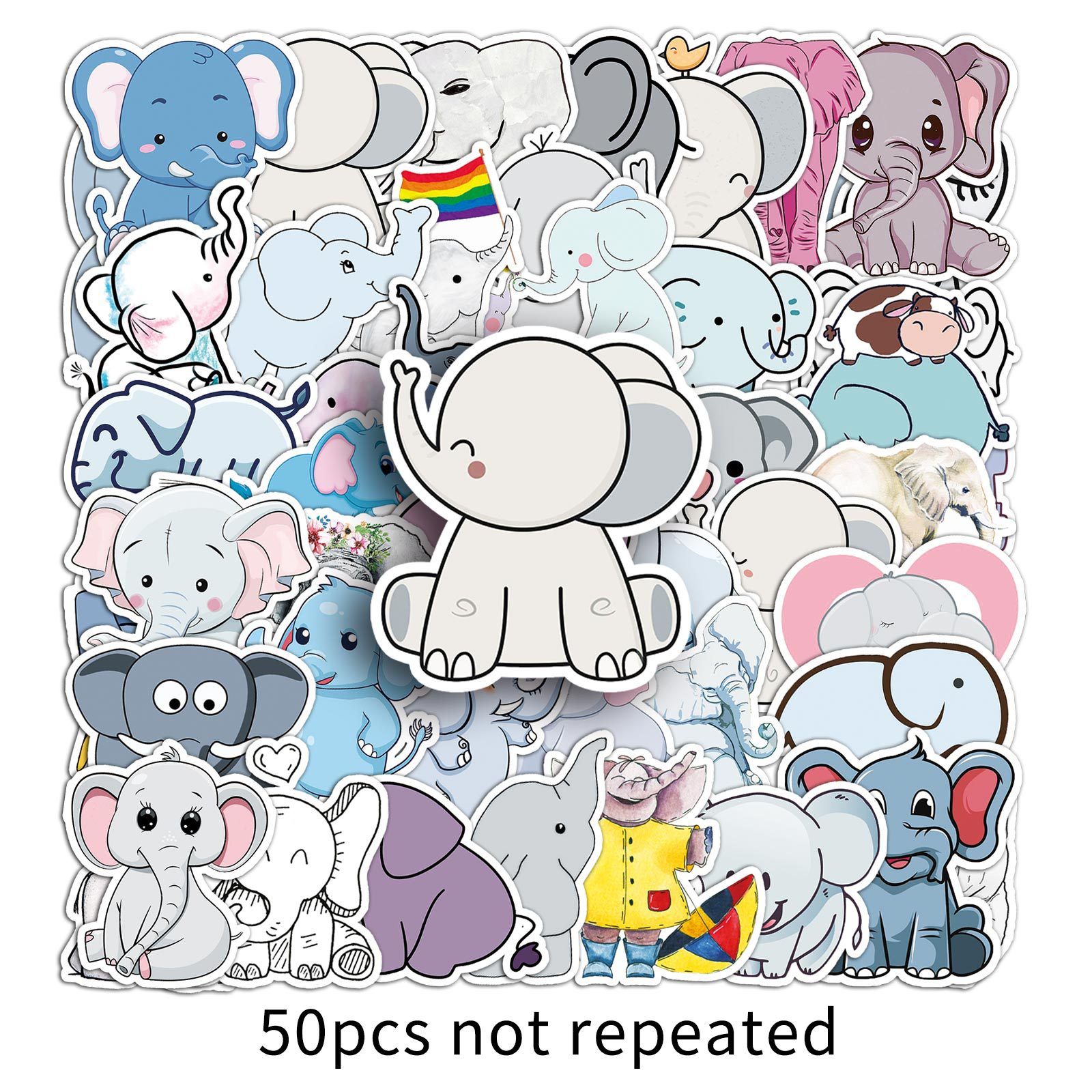 50 코끼리 스티커 만화 동물 귀여운 방수 장식 전화 케이스 노트북 수하물 스티커