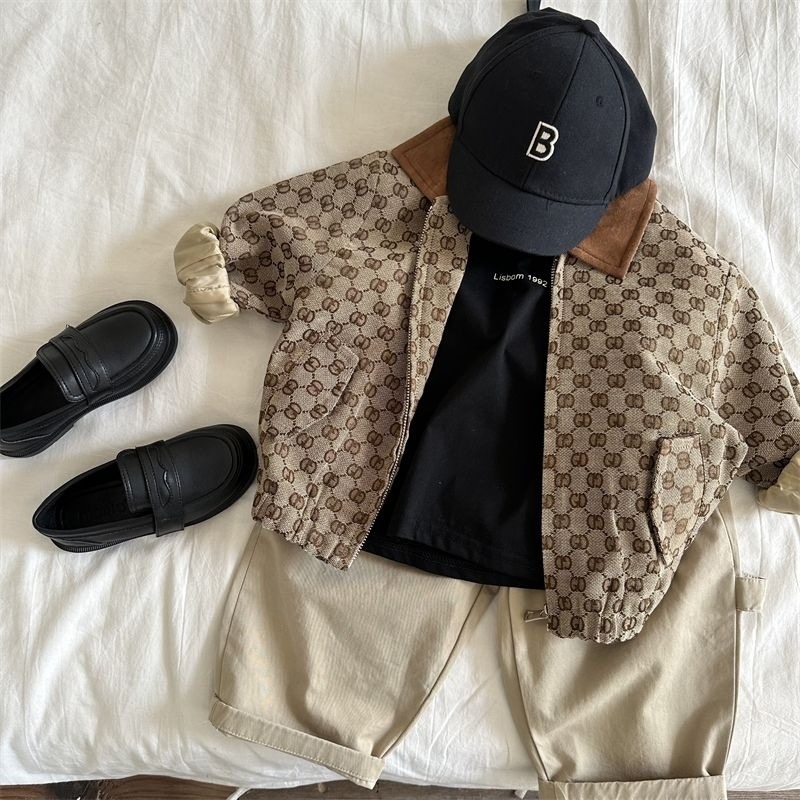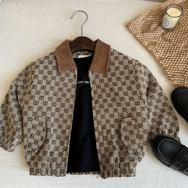 어린이 코트 봄과 가을 코트 소년 소녀 용 지퍼 코트 인쇄 아동용 옷깃 한국식 캐주얼 자켓 트렌디