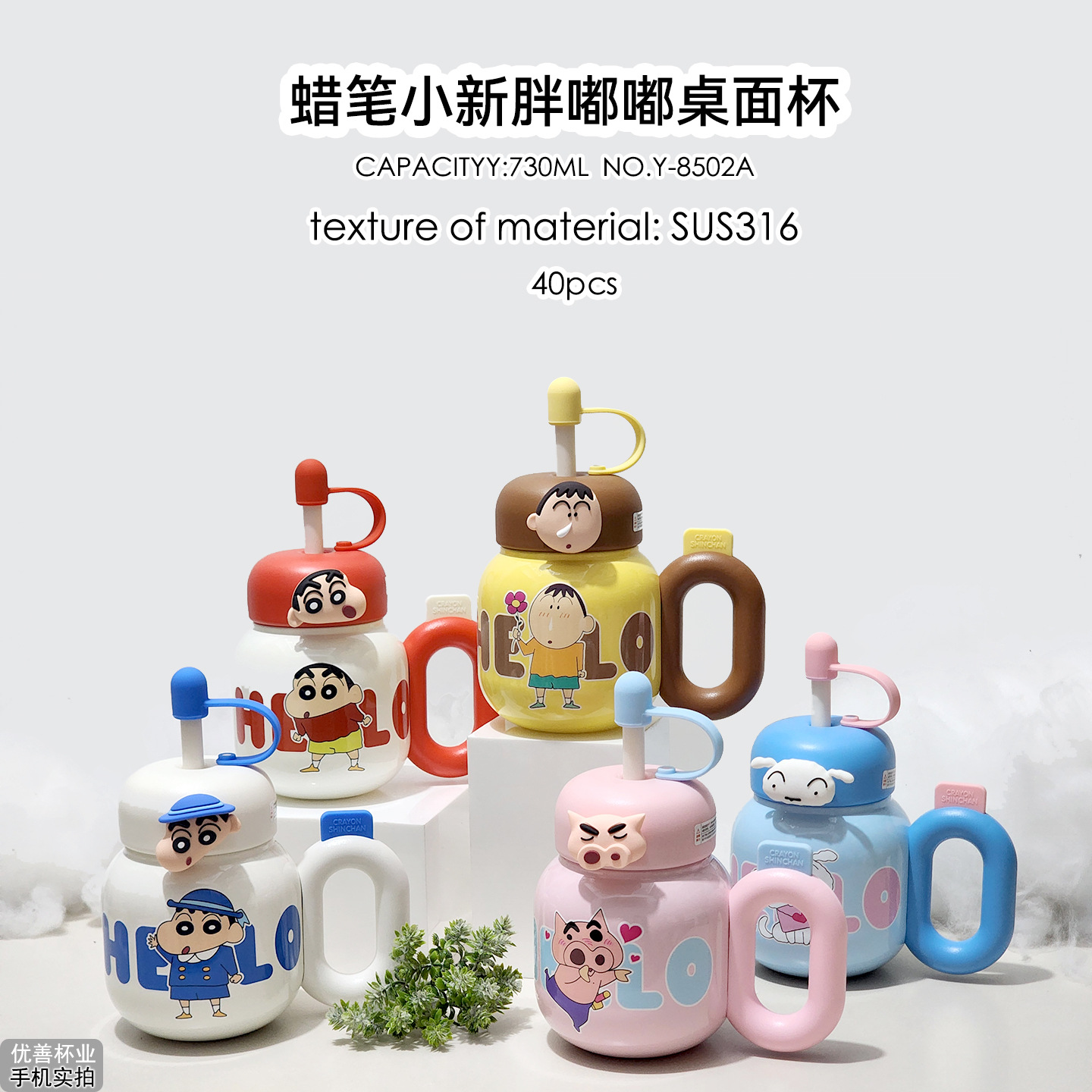 정품 크레용신짱 보온병 남자아이 통통한 어린이 물컵 학생용 스테인리스 보온컵 대용량