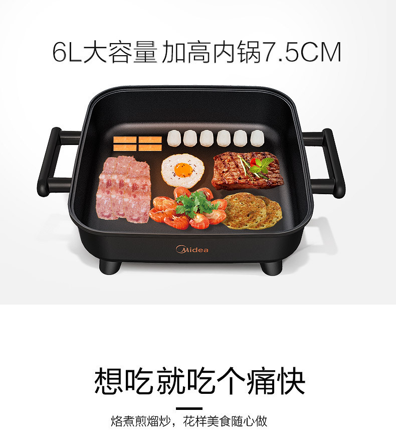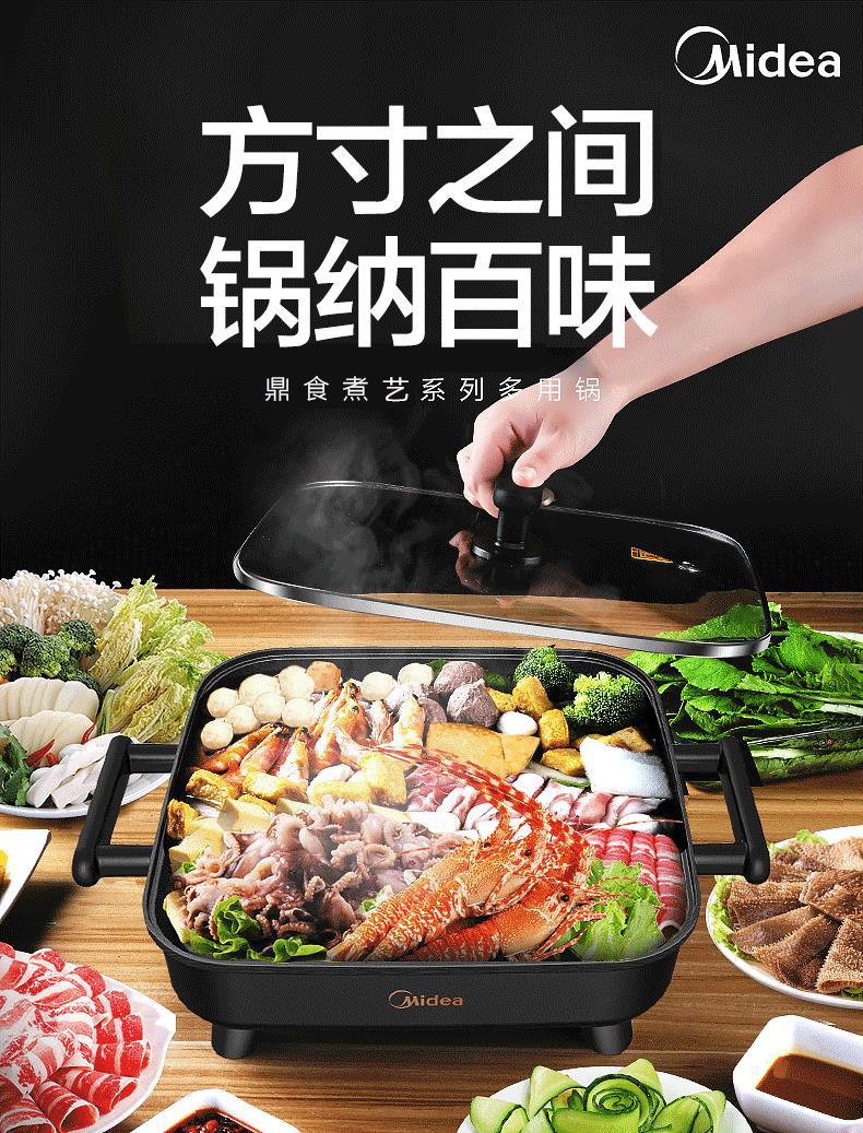 Midea/Midea DY3030Easy101 전기 뜨거운 냄비 전기 요리 냄비 볶음, 찜 및 구이 가정용 통합 냄비 스틱스토어 가기