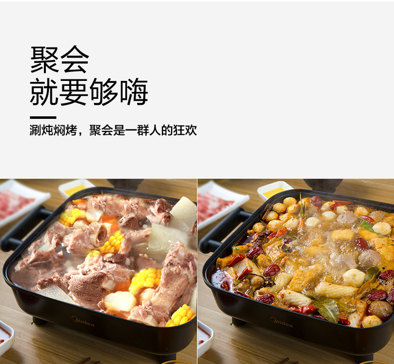 Midea/Midea DY3030Easy101 전기 뜨거운 냄비 전기 요리 냄비 볶음, 찜 및 구이 가정용 통합 냄비 스틱