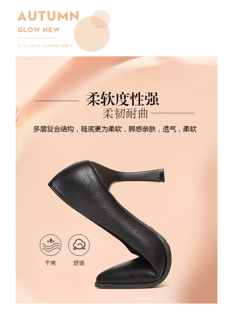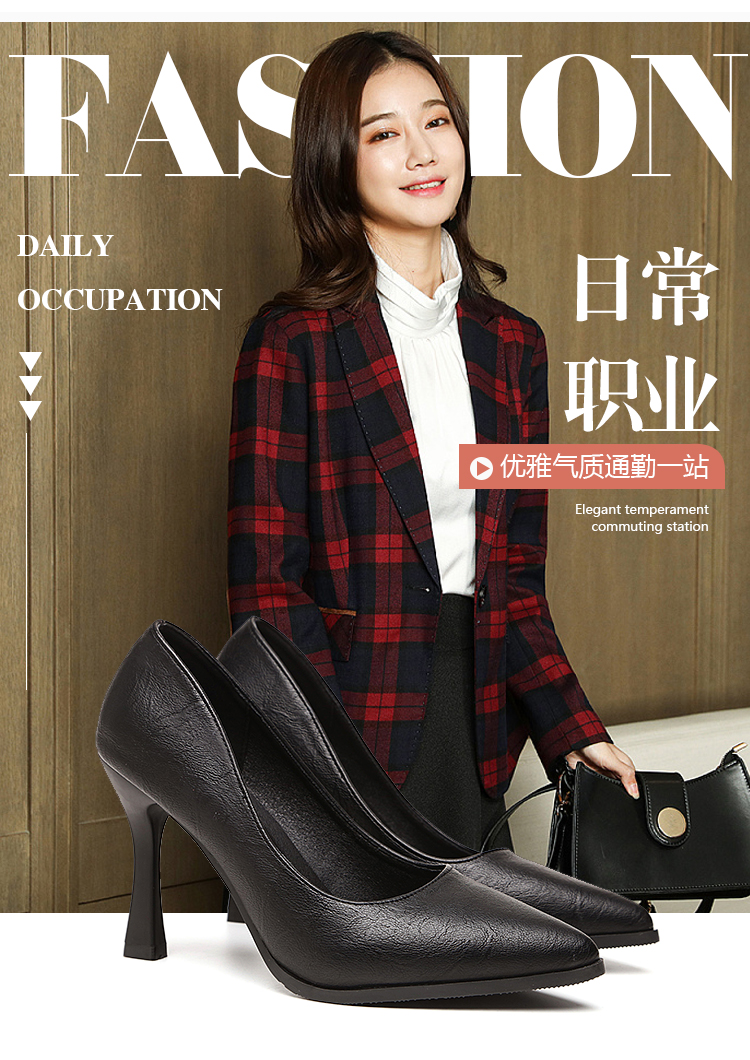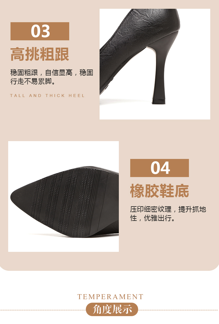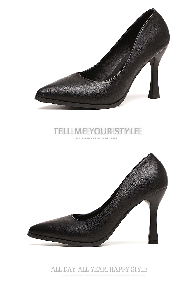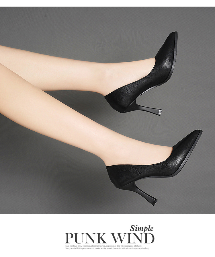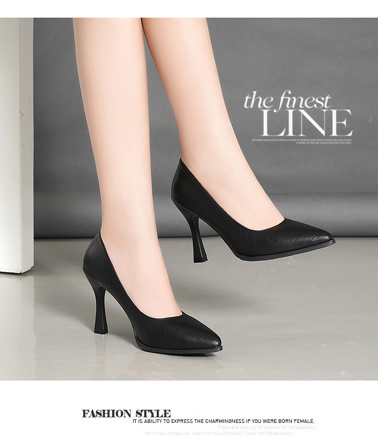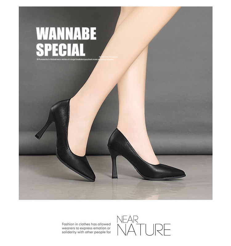 Cowhide 2024 새로운 하이힐 얇은 굽이 편안한 포인팅 싱글 레이어 신발 여성 미드 힐 원피스 작업 전문 트렌디 신발스토어 가기