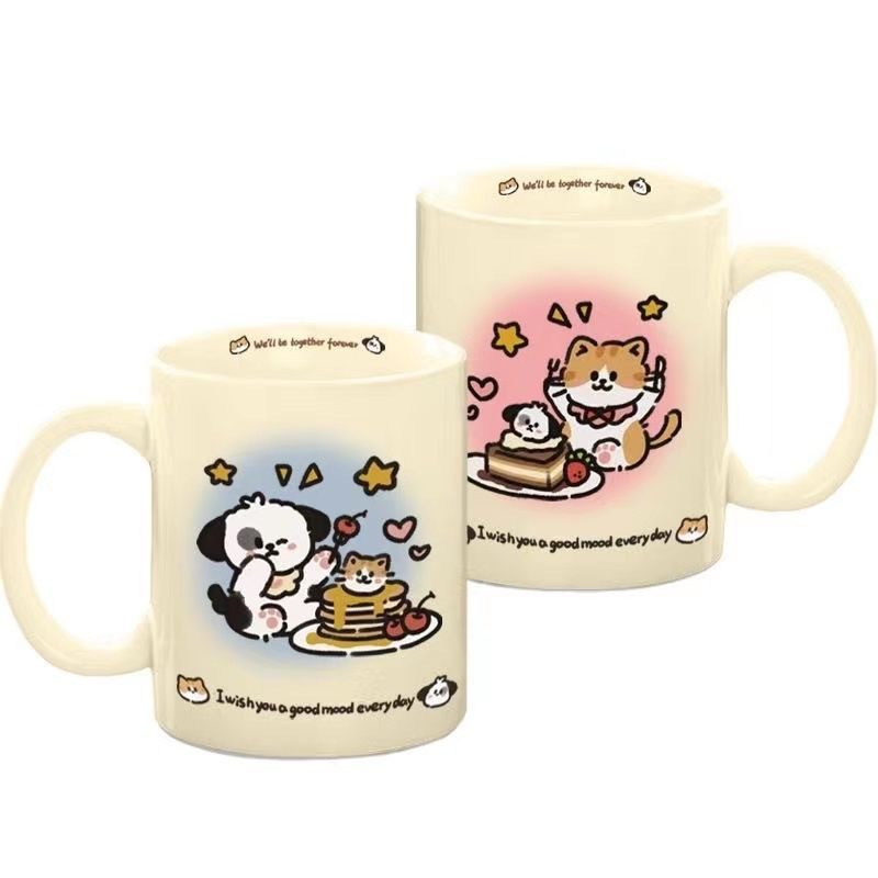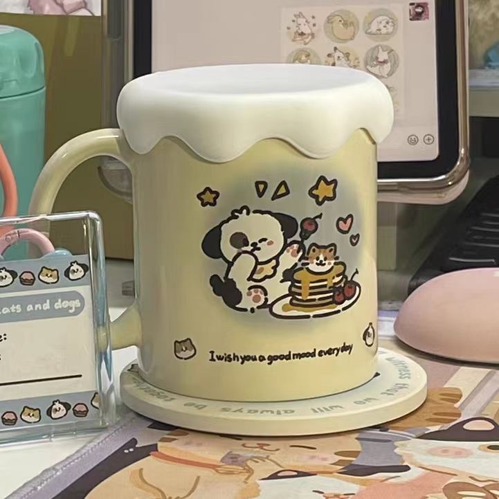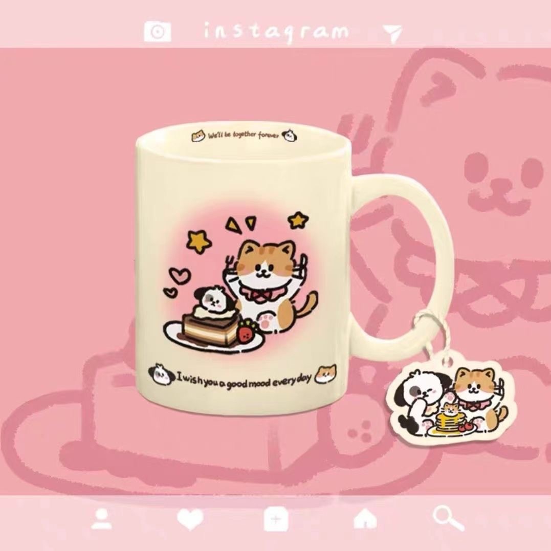 점진적 변화 오렌지 고양이 강아지 슈퍼 귀여운 세라믹 물 컵 Ins 스타일 소녀를위한 뚜껑이있는 높은 색상 가치 생일 선물스토어 가기