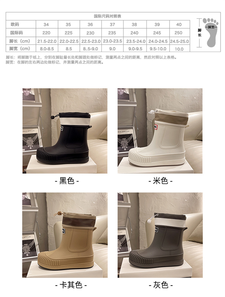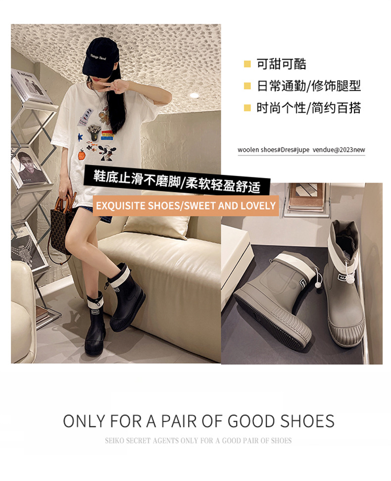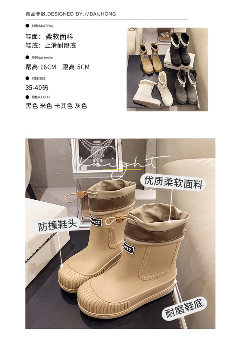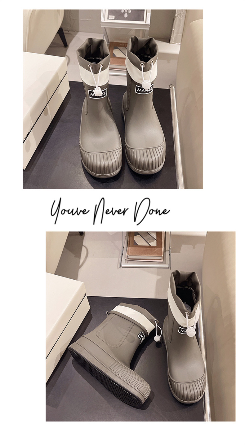 거들 방수 여성 장화 패션 장화 온라인 인기 여자 물 신발 야외 미끄럼 방지 고무 신발 일본과 한국 패션스토어 가기
