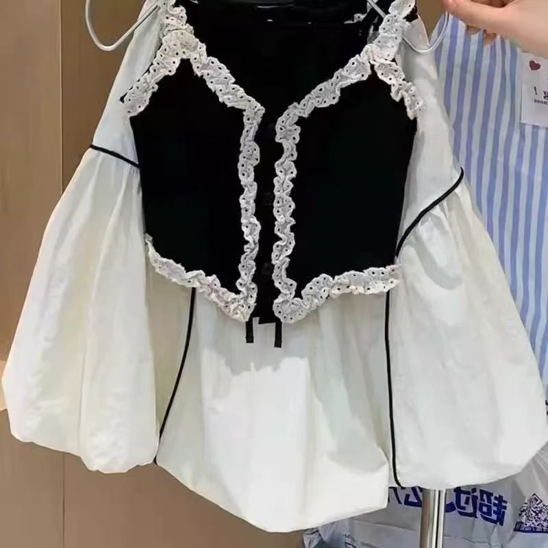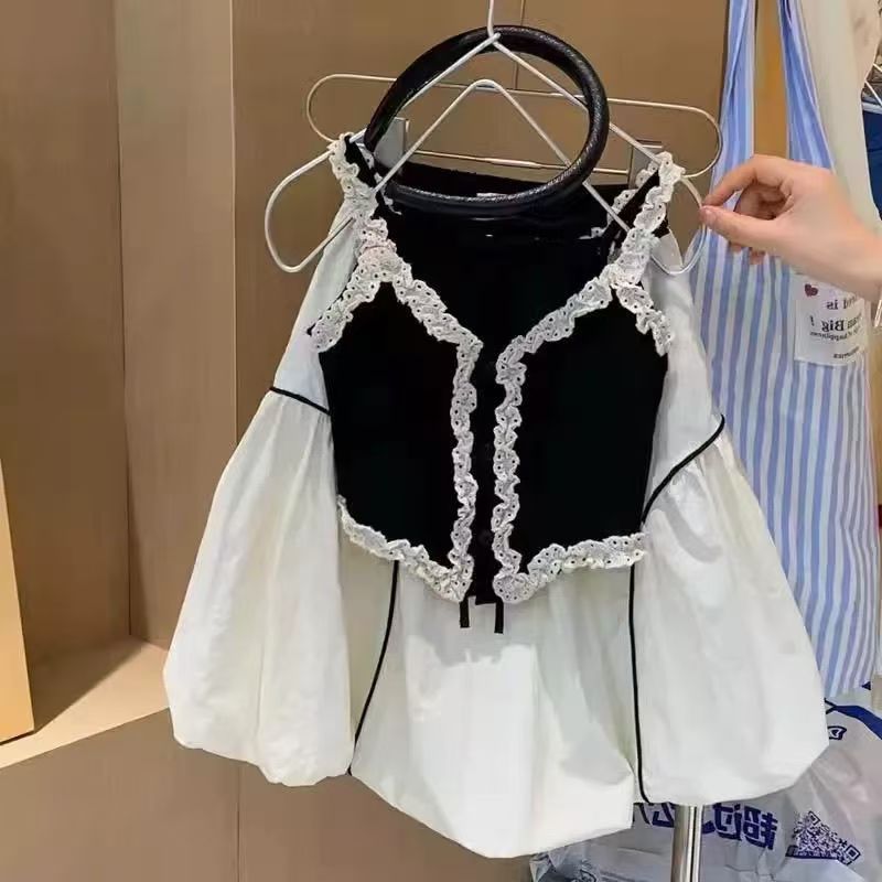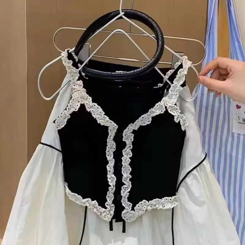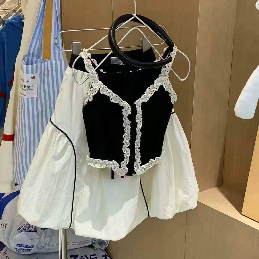 소녀 여름 세트 2024 새로운 도착 소녀 스타일링 사이버 축하 레이스 조끼 공주 케이크 조끼 투피스 세트