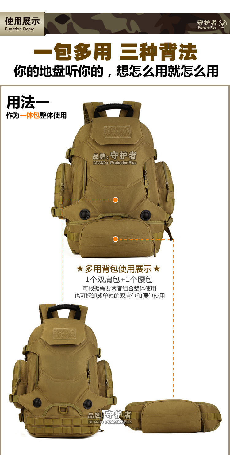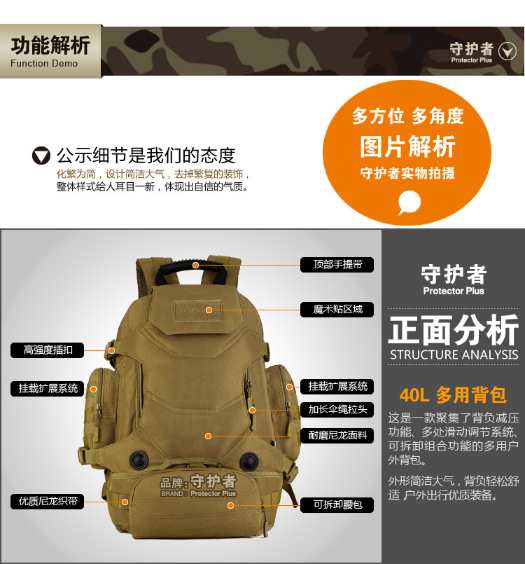 국경 간 뜨거운 판매 기능 전술 배낭 군사 팬 야외 하이킹 등산 가방 안티 튀는 다기능 승마 배낭