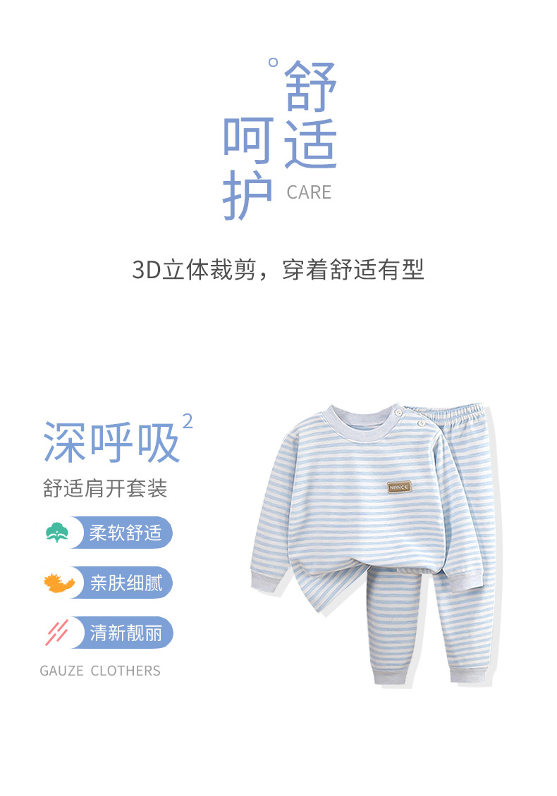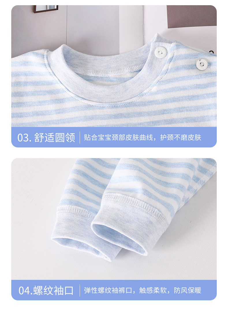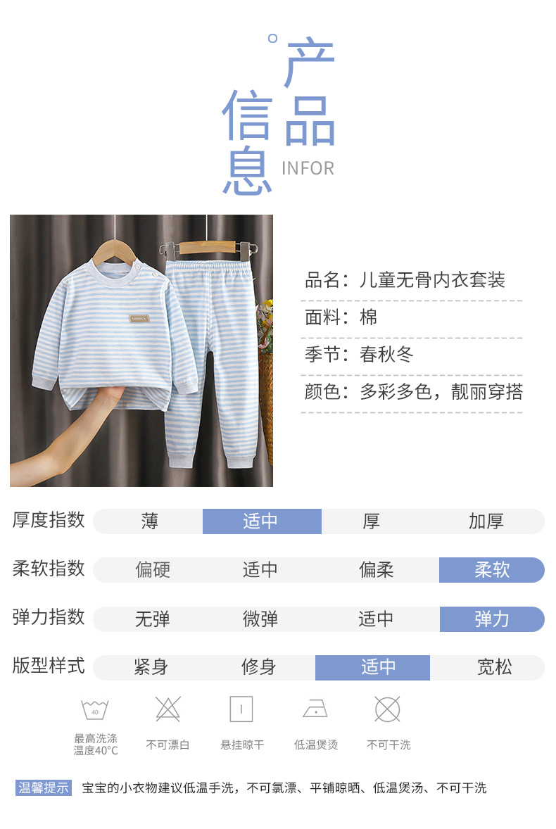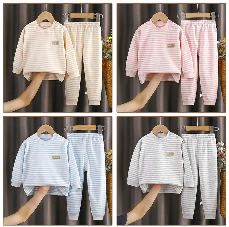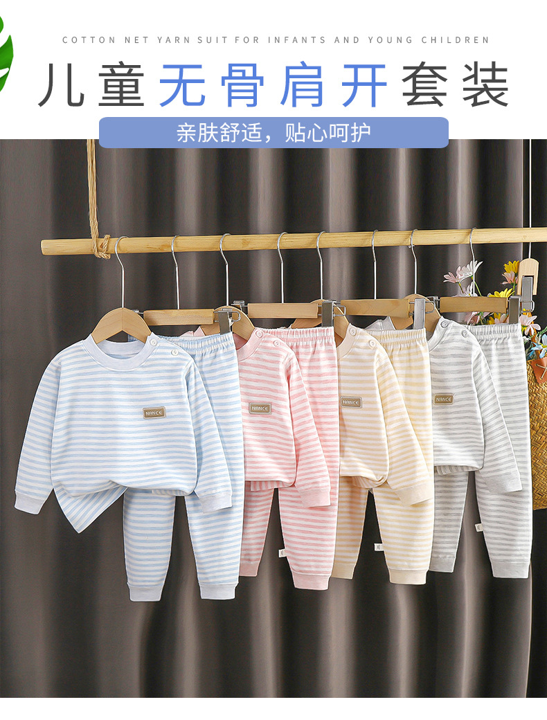 뼈없는 컬러풀한 면 소재 투피스 세트 아동용 가을옷 내의 면 홈웨어 잠옷 남아 여아 보온스토어 가기