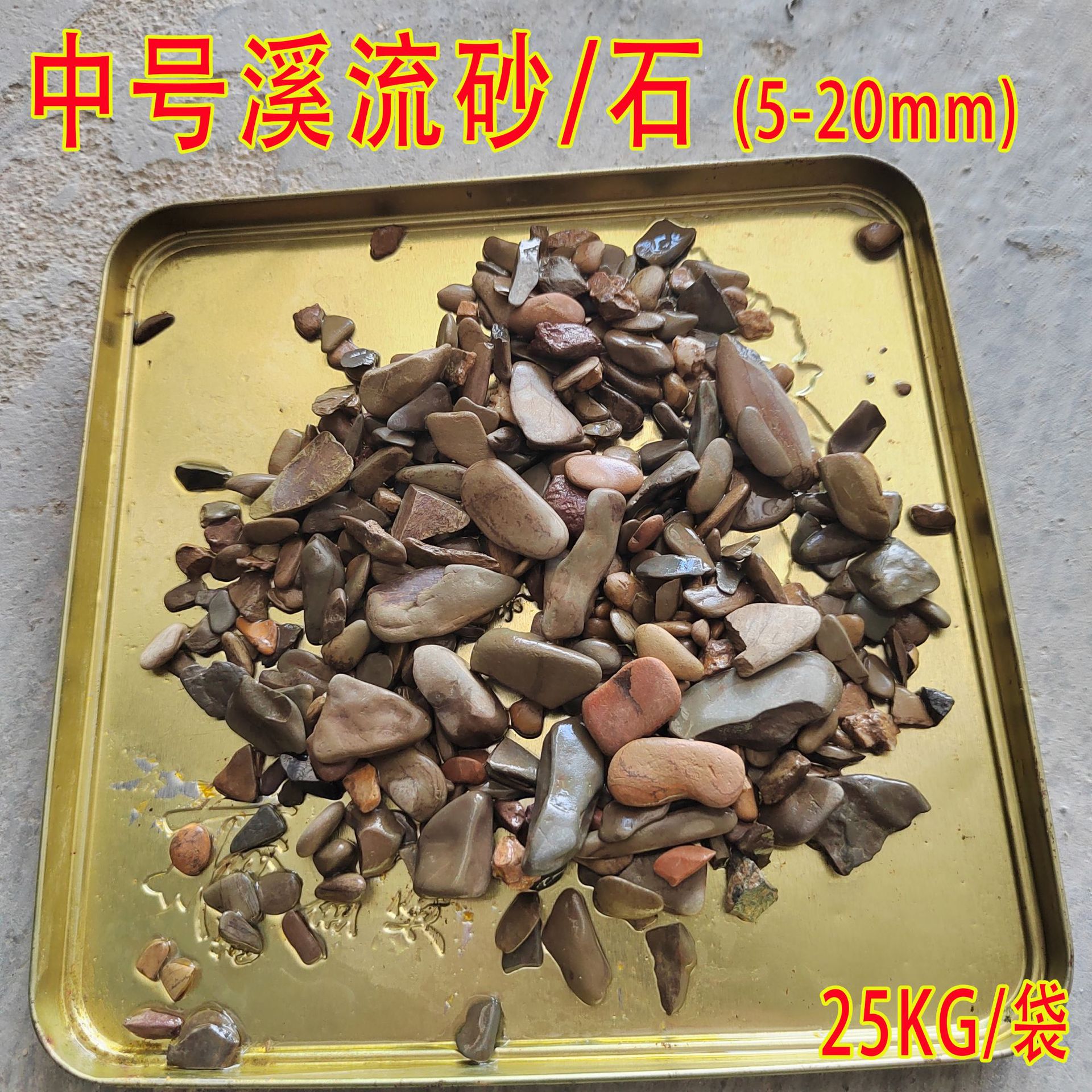 天色中号溪流砂/石,尺寸约5-20MM,大小颜色不一,一袋25公斤,不包运费...