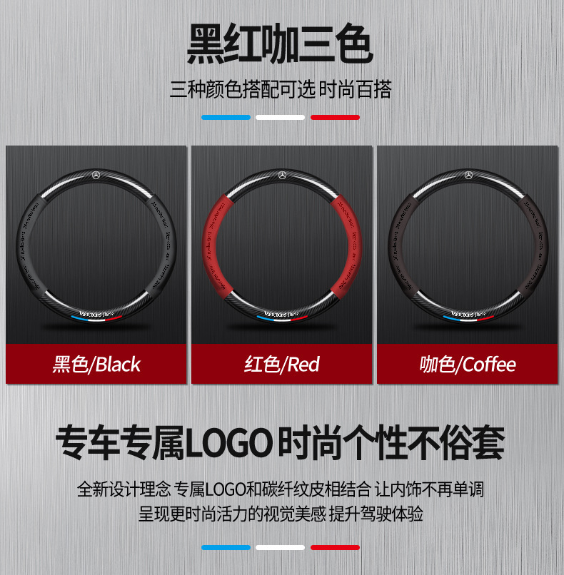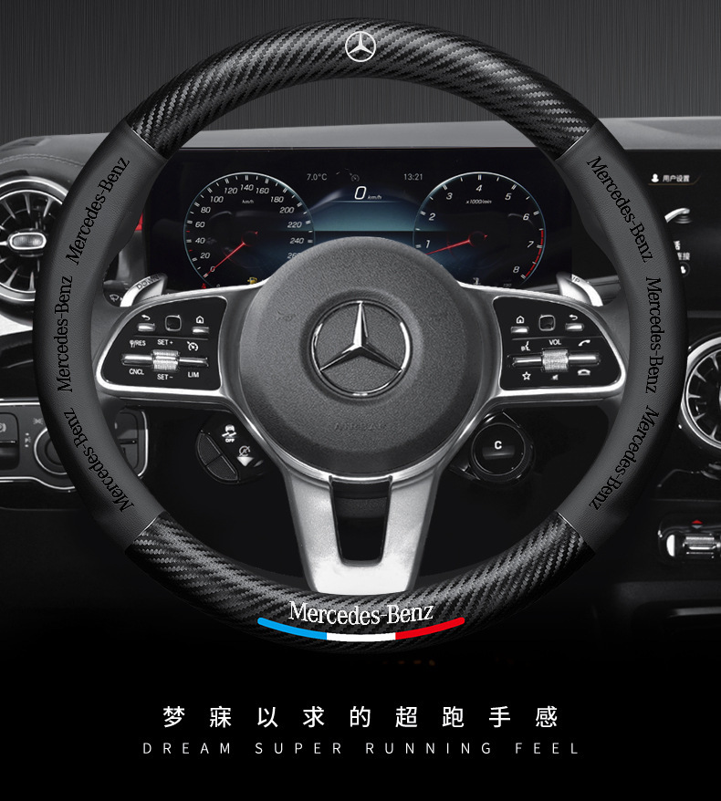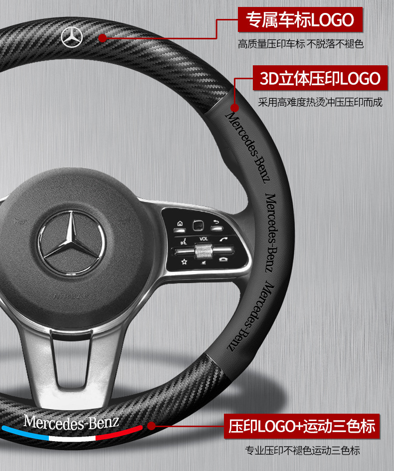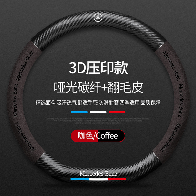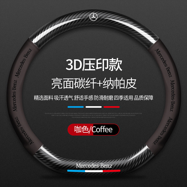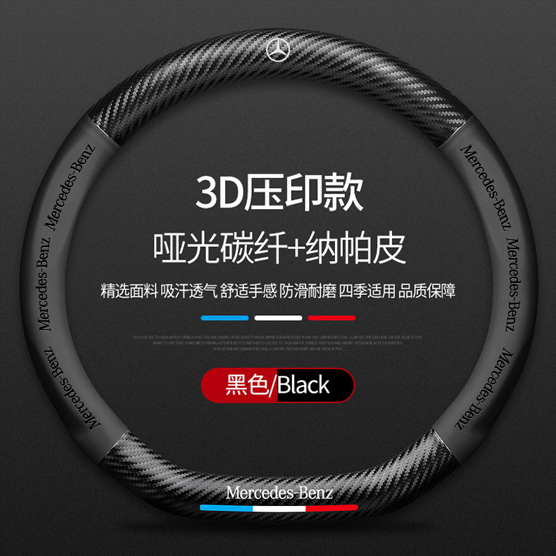 메르세데스-벤츠 C260LA200LGLA220E300 탄소 섬유 스티어링 휠 커버 사계절 유니버설 미끄럼 방지 자동차 핸들 커버에 적합스토어 가기