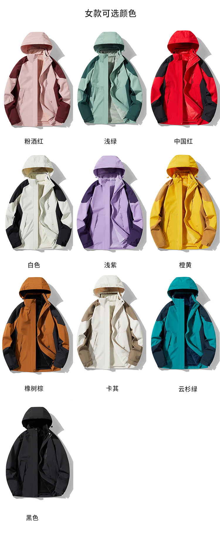 탈부착 가능한 방수 기능이 있는 여성용 캐주얼 봄가을 아웃도어 트렌디 방풍 등산 자켓 (3-in-1)