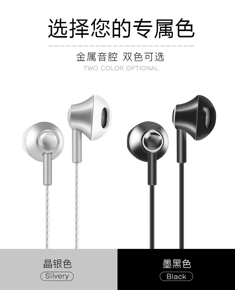 마이크가있는 새로운 모든 금속 범용 헤드셋 인 이어 와이어 컨트롤은 전화 5/6 안드로이드 범용 무게 저하에 적합합니다.