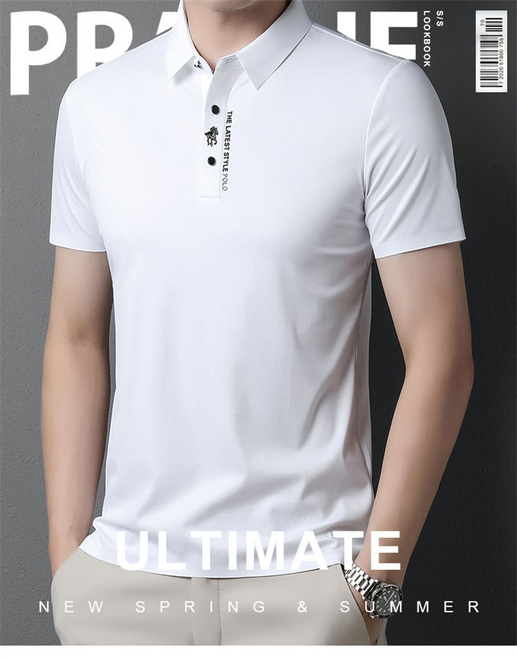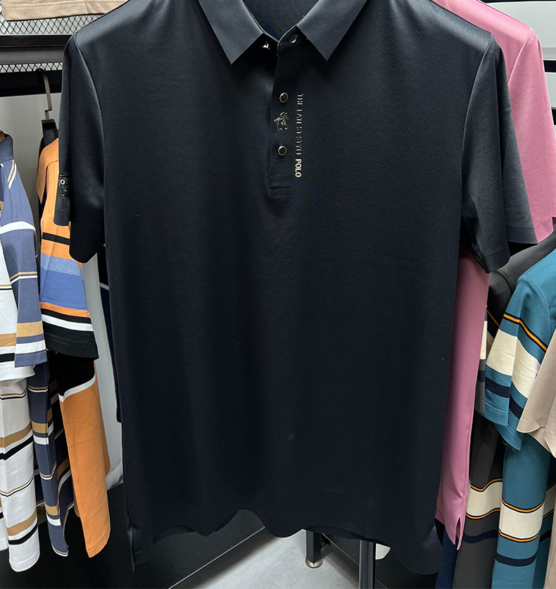 국경을 넘나드는 인기 유럽 사이즈 남성용 고급 여름 폴로 셔츠 비즈니스 캐주얼 심리스 아이스 실크 반팔 티셔츠 포니 로고스토어 가기
