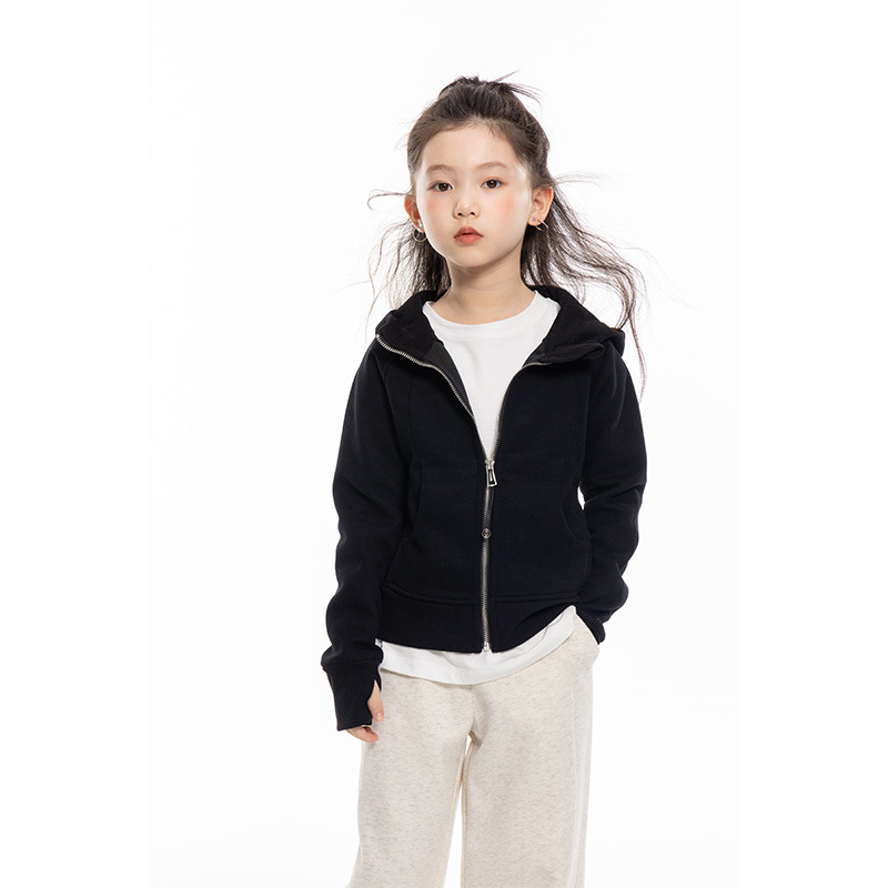 여자 슬림 후드 스포츠 스웨트 셔츠 재킷 2025 가을 새로운 어린이 유행 다목적 지퍼 카디건 탑
