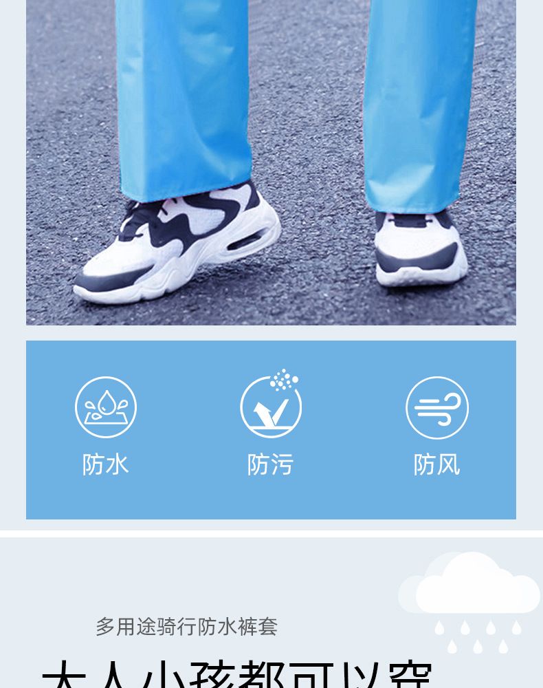 방수 및 먼지 방지 성인 및 어린이를 타기위한 긴 비 방지 바지는 환경 친화적이고 무취의 단색 인쇄용으로 사용할 수 있습니다.스토어 가기