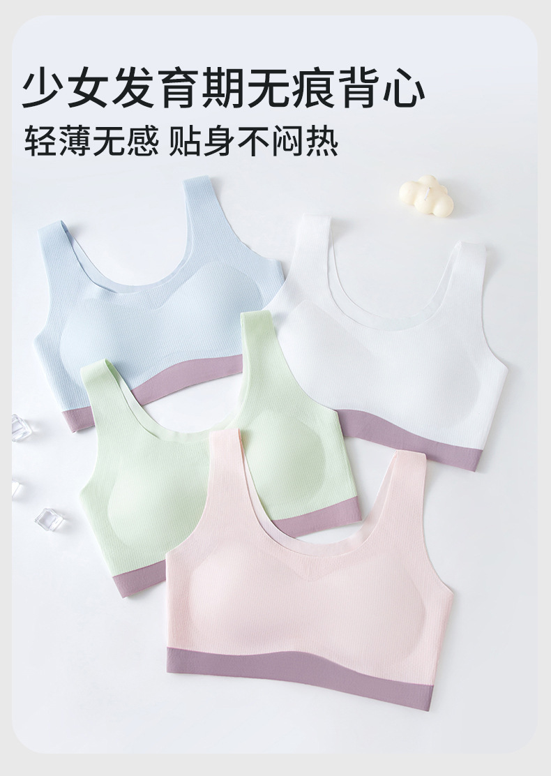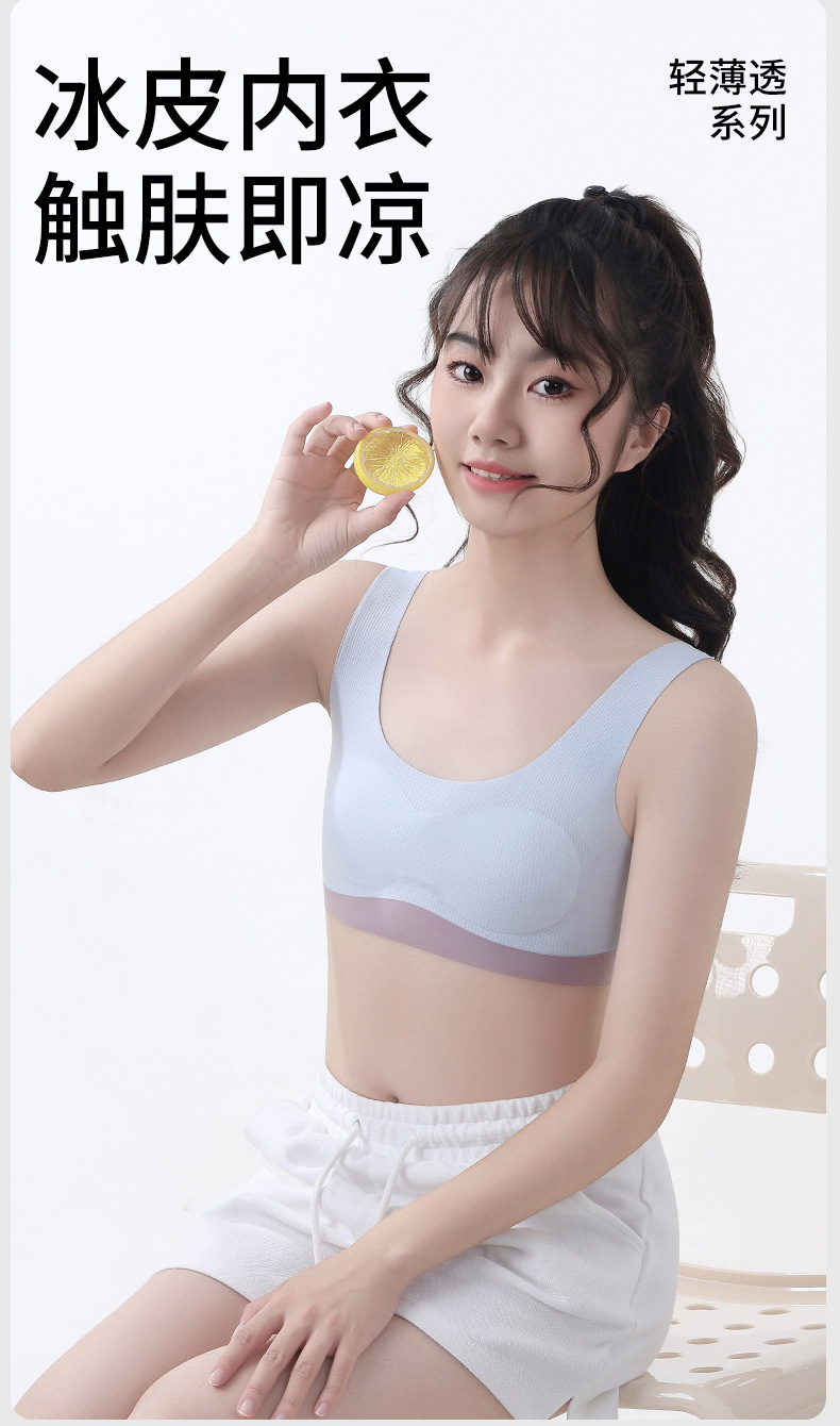여름 원활한 아이스 스킨 소녀 속옷 소녀 발달 학생 작은 조끼 방지 범프 통합 통기성 브래지어