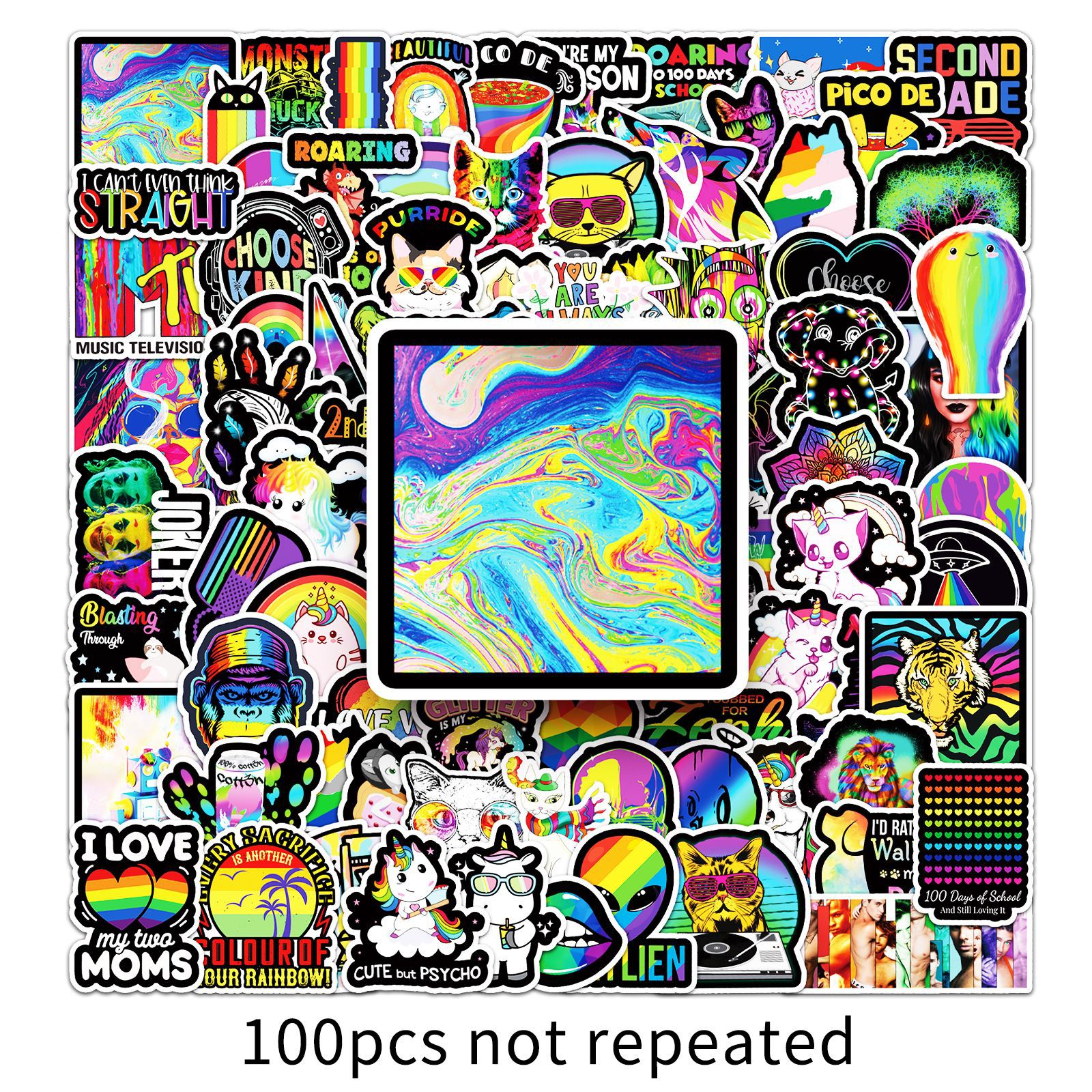 100 장 다채로운 컬러 스티커 유행 패션 레인보우 쿨 방수 장식 DIY 가방 냉장고 스티커