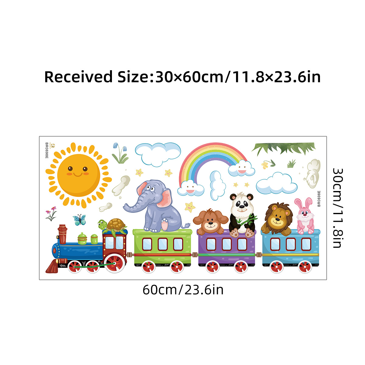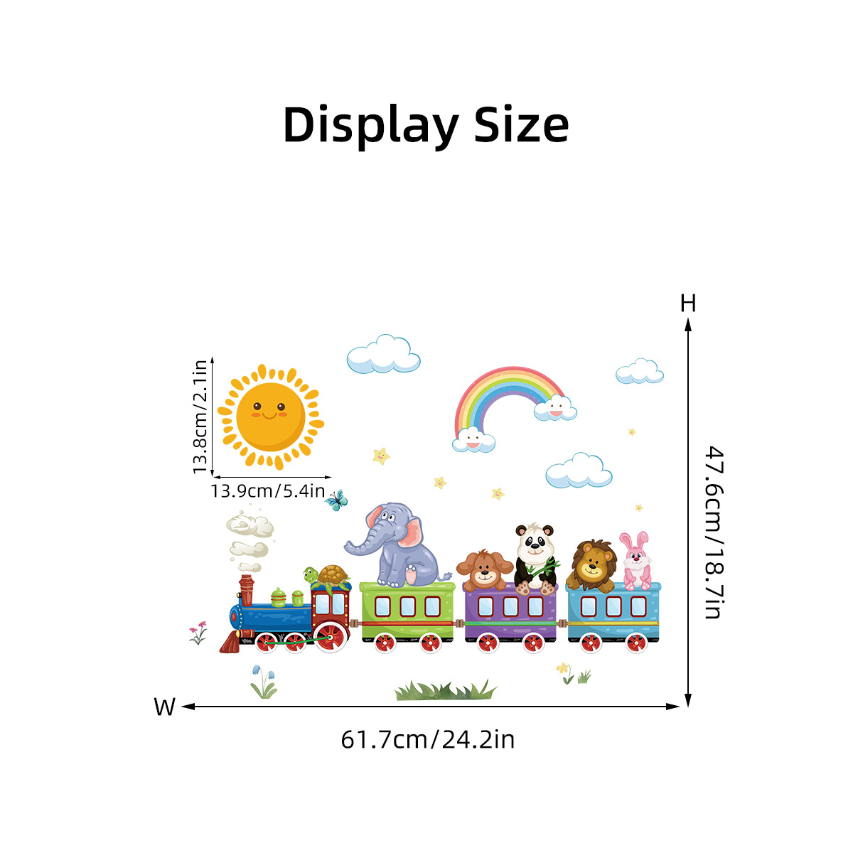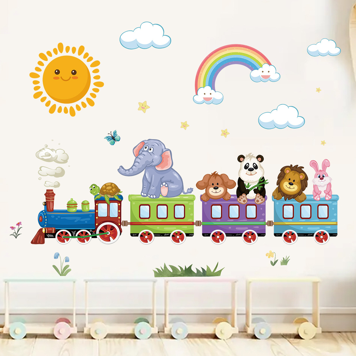 만화 귀여운 작은 동물 기차 자기 접착 벽 스티커 태양 무지개 방 배경 벽 장식 스티커 BR0698E스토어 가기